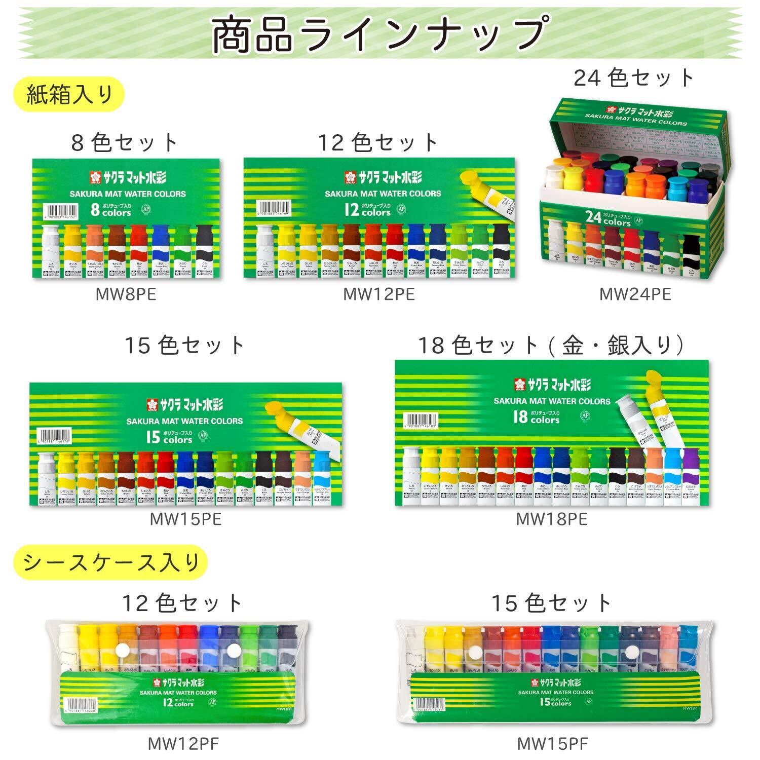 サクラクレパス 絵の具 マット水彩 ポリチューブ入り 24色セット MW24PE