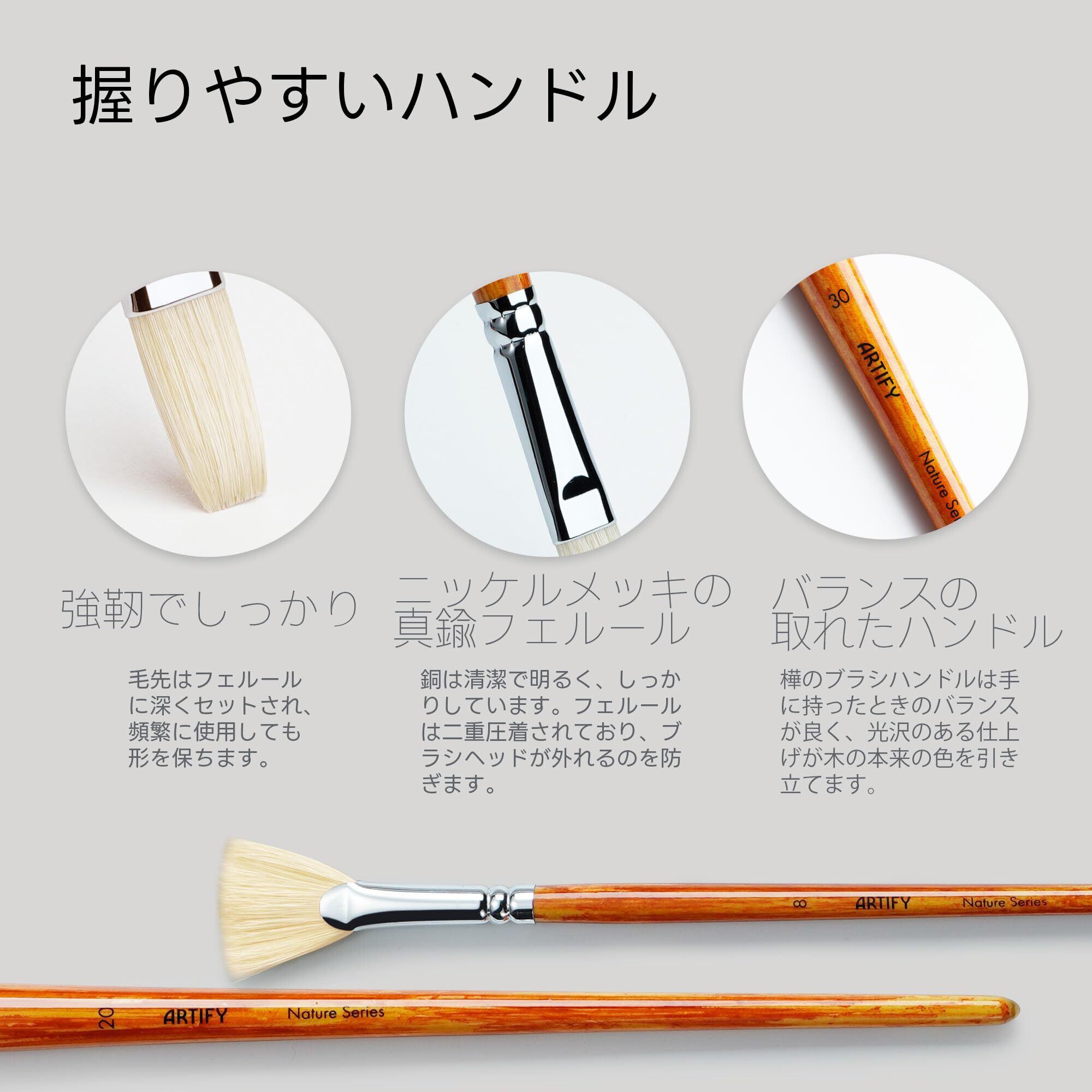 自然木製ハンドル:私たちの高品質なアーティストブラシは、美しい木の色のハンドルと白銅製の保護フェルールを使用し、熟練したブラシ職人が一つ一つ手作りしています。このセットは、自然の美しさを表現しており、私たちの生活に貢献し、希望とインスピレーションを与えてくれます。