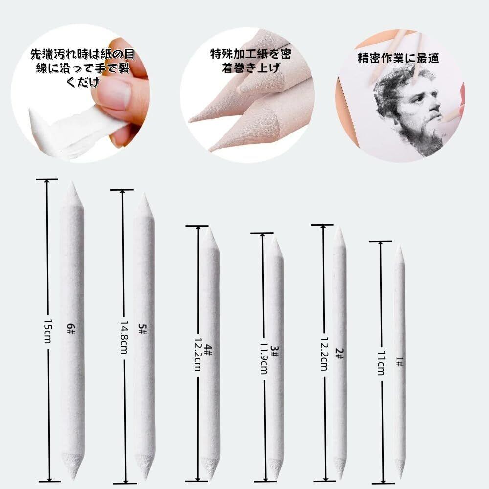 【使用方法】紙擦筆,先端汚れ時は紙の目線に沿って手で裂くだけ,常に清潔な状態を維持。精密作業に最適、細部のぼかし~広範囲のグラデーションまで自在対応 。スポンジ擦筆ダ,繰り返し洗えて環境に優しい ,パステル画のマット質感表現木炭デッサンの自然な陰影付けに 。紙ヤスリ,鉛筆を急速に薄く混合するのに優れています。デッサンやイラストを描くとき使っていくうちに汚れて黒くなってしまいます。汚れたら紙ヤスリを使うと綺麗にできます。