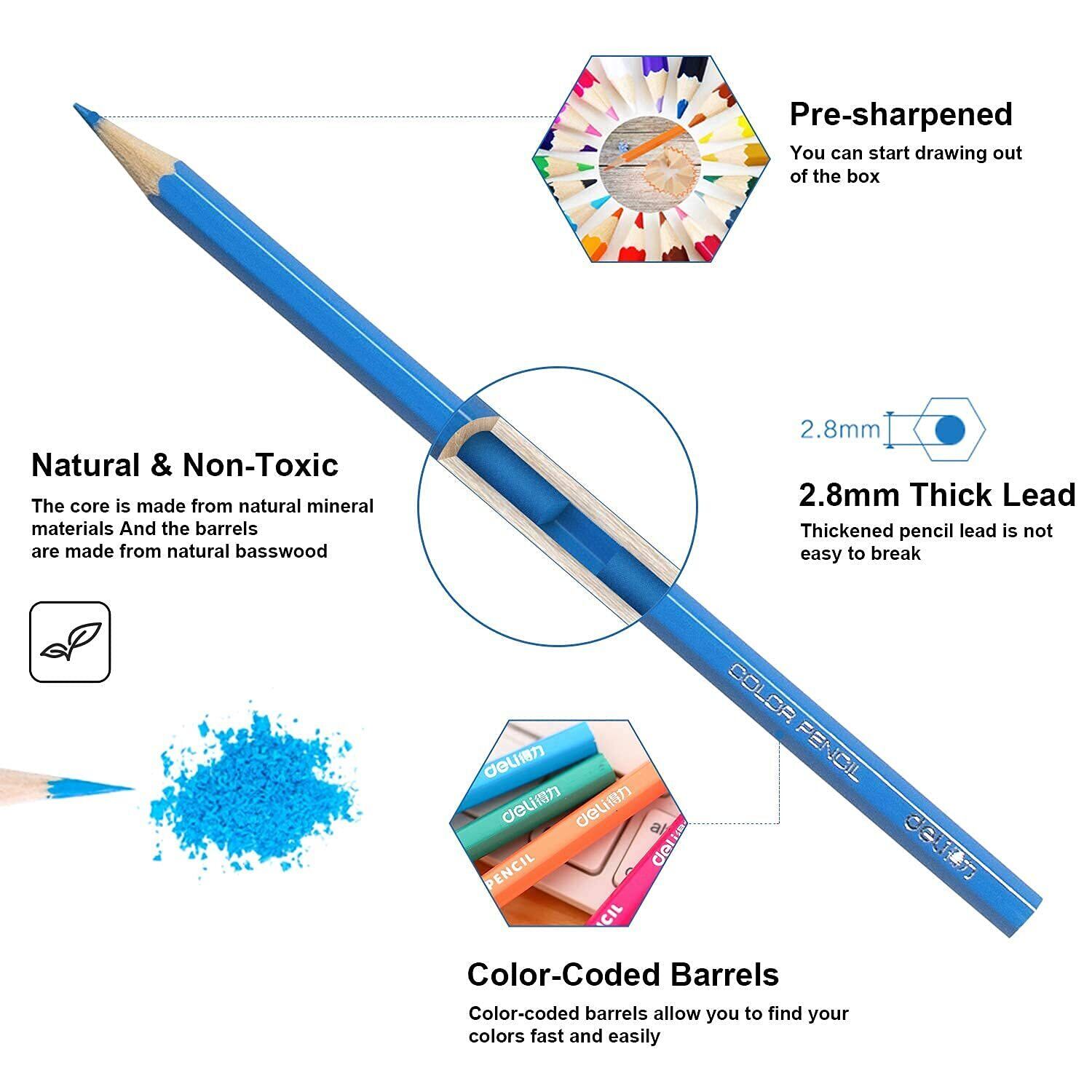 折れにくさ – 色付け用の鉛筆を高品質のアメリカボダイ樹で覆っていますので、鉛筆が容易く折れることがありません。
