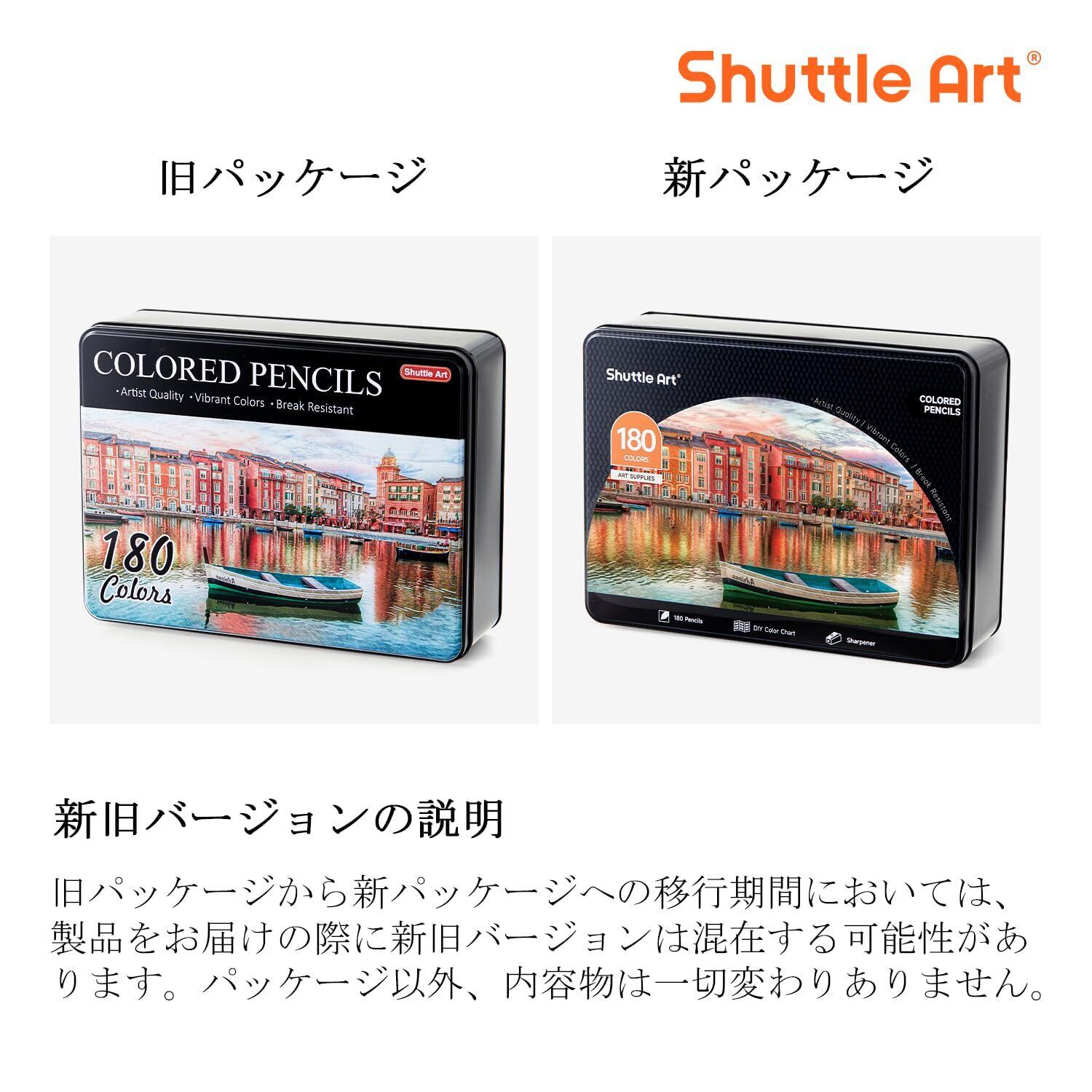 Shuttle Art 色鉛筆 180色 油性色鉛筆 カラーペンセット 大人の塗り絵 メタリック色 鉛筆削り イラスト デザイン デッサン 落書き 缶入 収納便利 おしゃれ 子供用 初心者 アーティスト 入園・入学お祝い プレゼント