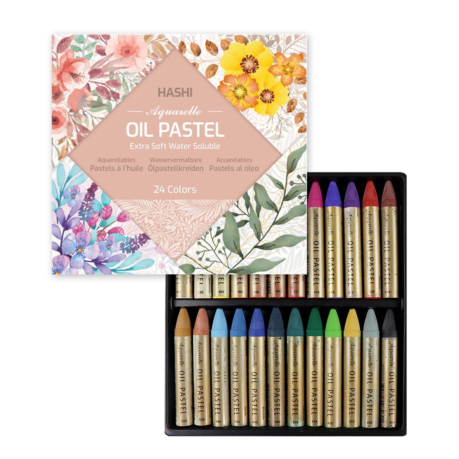 (24色) HASHI パステル, クレパス, アーティストや専門家用 無毒性 ソフトウォーター 水溶性 オイル パステル (24色)