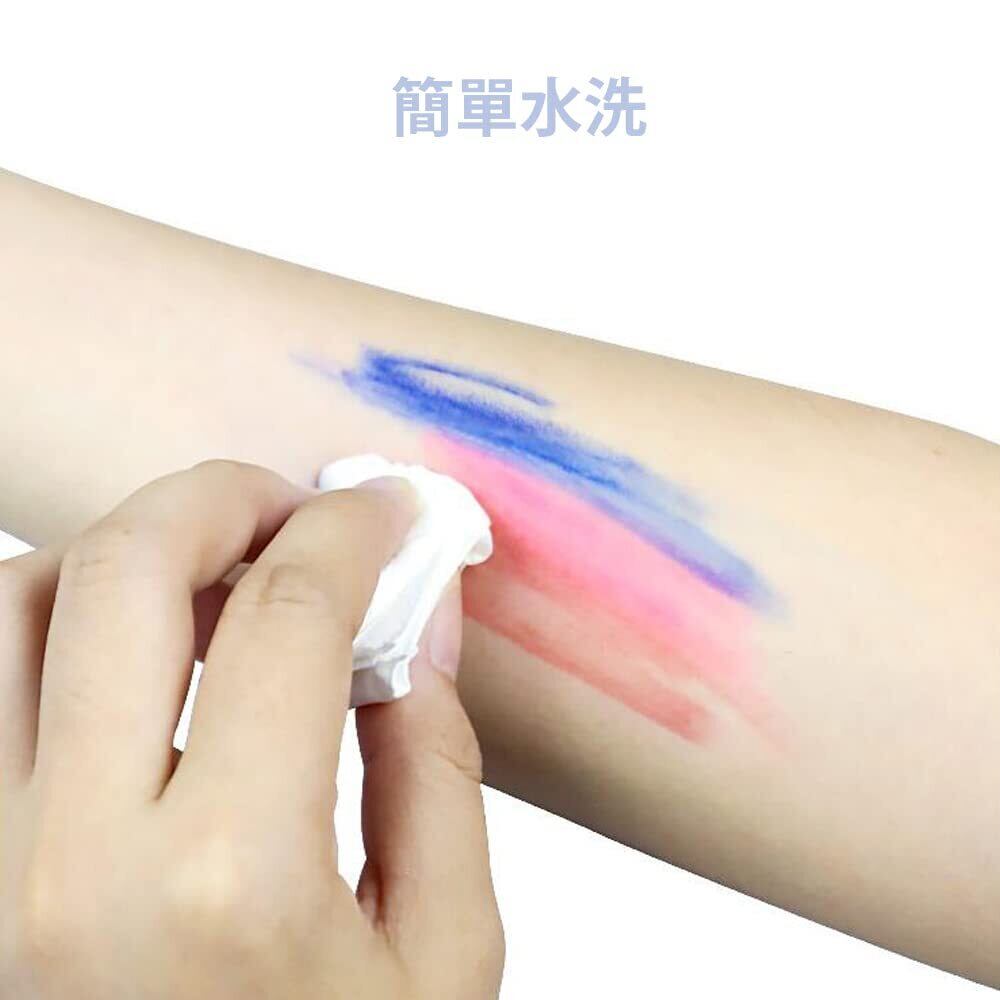 2.安全無毒:人体に安全無害なクレヨンで、顔はもちろん、手、体にも使えるペイントです。