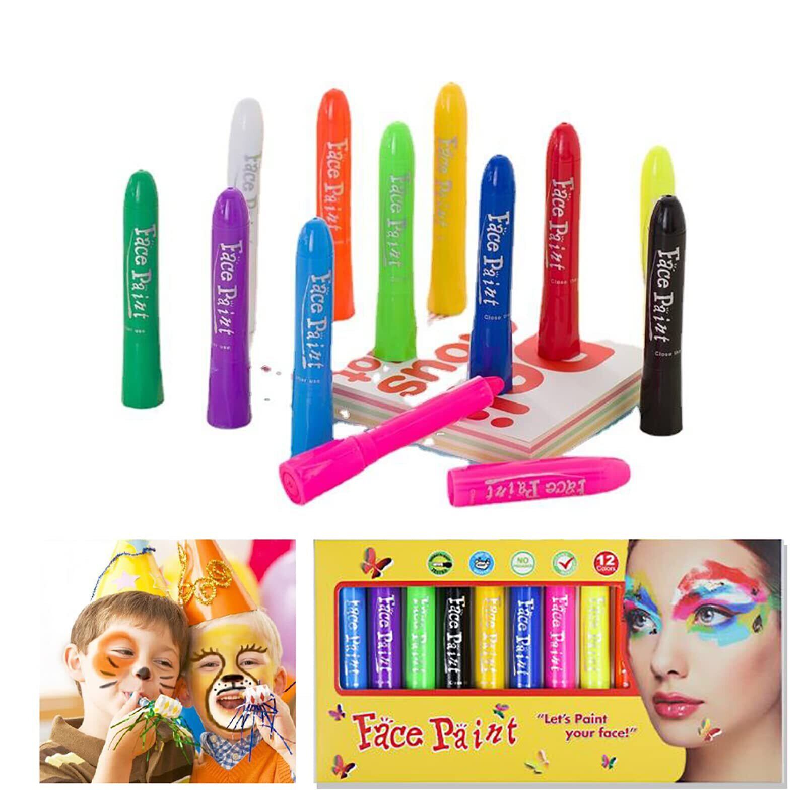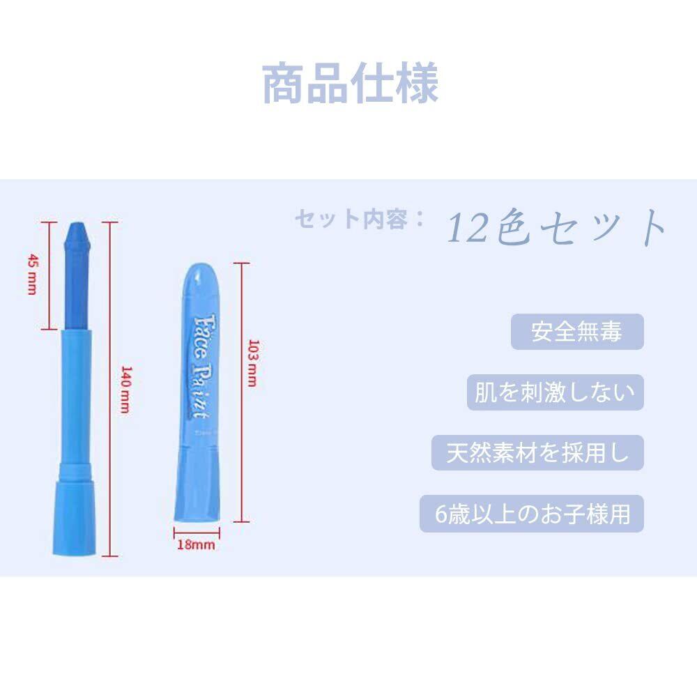 YFFSFDC フェイスペイント 12色セット クリスマス ハロウィン コスプレ 小道具 安全 無毒 クレヨン 顔ペン ボディペイント 簡単水洗 祭り スポーツ応援に最適 (A)