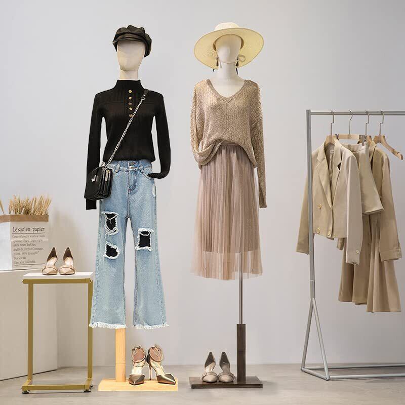 【展示の最良の選択】モデルの表面は清潔なベージュのリネン織物で覆われている。ドレスを見せるときにスタンドの中心穴に差し込むことができます。ズボンを見せるときは、スタンドを別の穴に差し込むことができます。T シャツ、ジャケット、ドレス、シャツ、セーター、パンツ、ウィッグ、アクセサリーに最適です。 (注: 写真の付属品はディスプレイ用であり、パッケージには含まれていません。)
