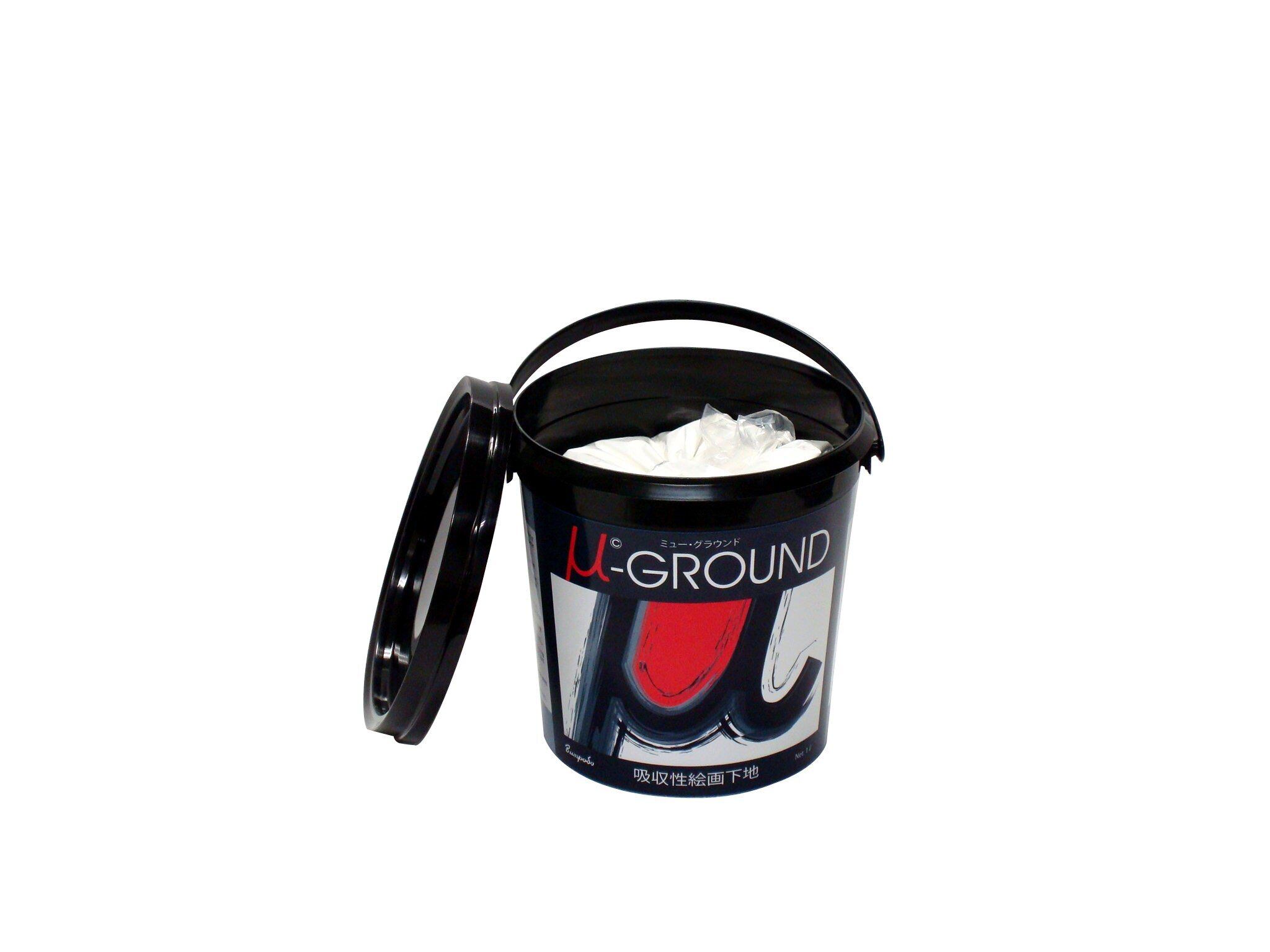 ミュー・グラウンド゙ 1000ml。ミュー・グラウンドは、吸収性のある下地剤です。古典絵画における白亜地や石膏地の優秀さを引き継ぎながら、手軽に扱えるものとして開発されました。これを塗布した画面には、テンペラや油絵具はもちろん、水彩、アクリル絵具など、どんな絵具でも描けます。古典技法のみならず、いろいろな描画材料との併用など、新しい表現の可能性が広がります。油絵具をはじめすべての絵具の一部がミュー・グラウンドに浸透し、より強力な固着力が得られます。板、布、紙、壁など、吸収性のあるものなら、どのようなものにも塗ることができます。開発・監修:女子美術大学 (より)