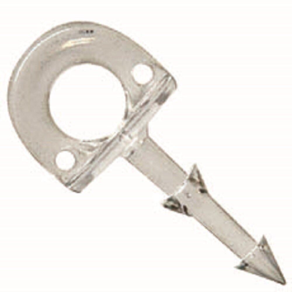 発泡ボード用フック。ボード上部の左右2ヶ所にフックの爪を食い込ませて固定し吊り下げる。