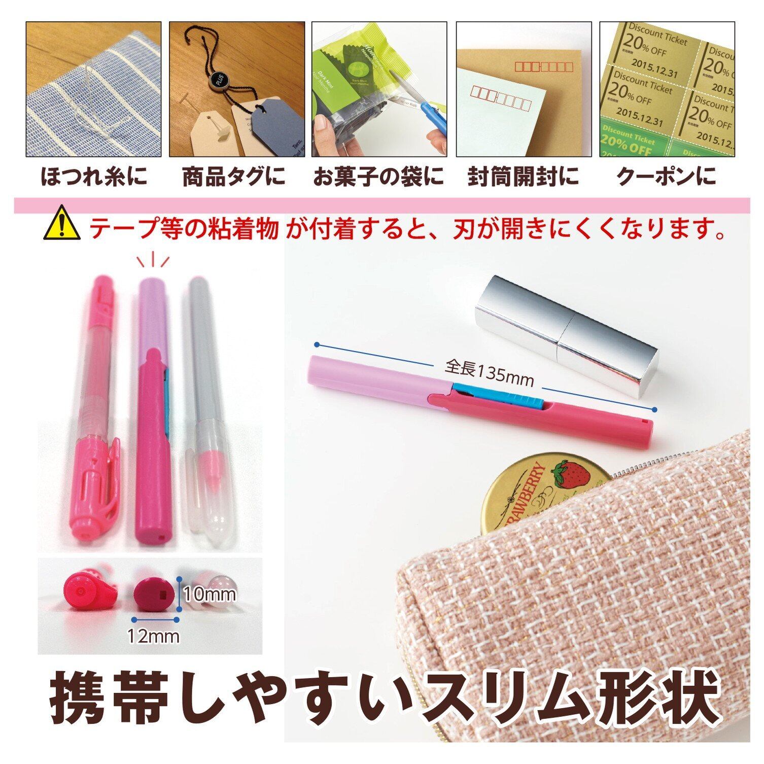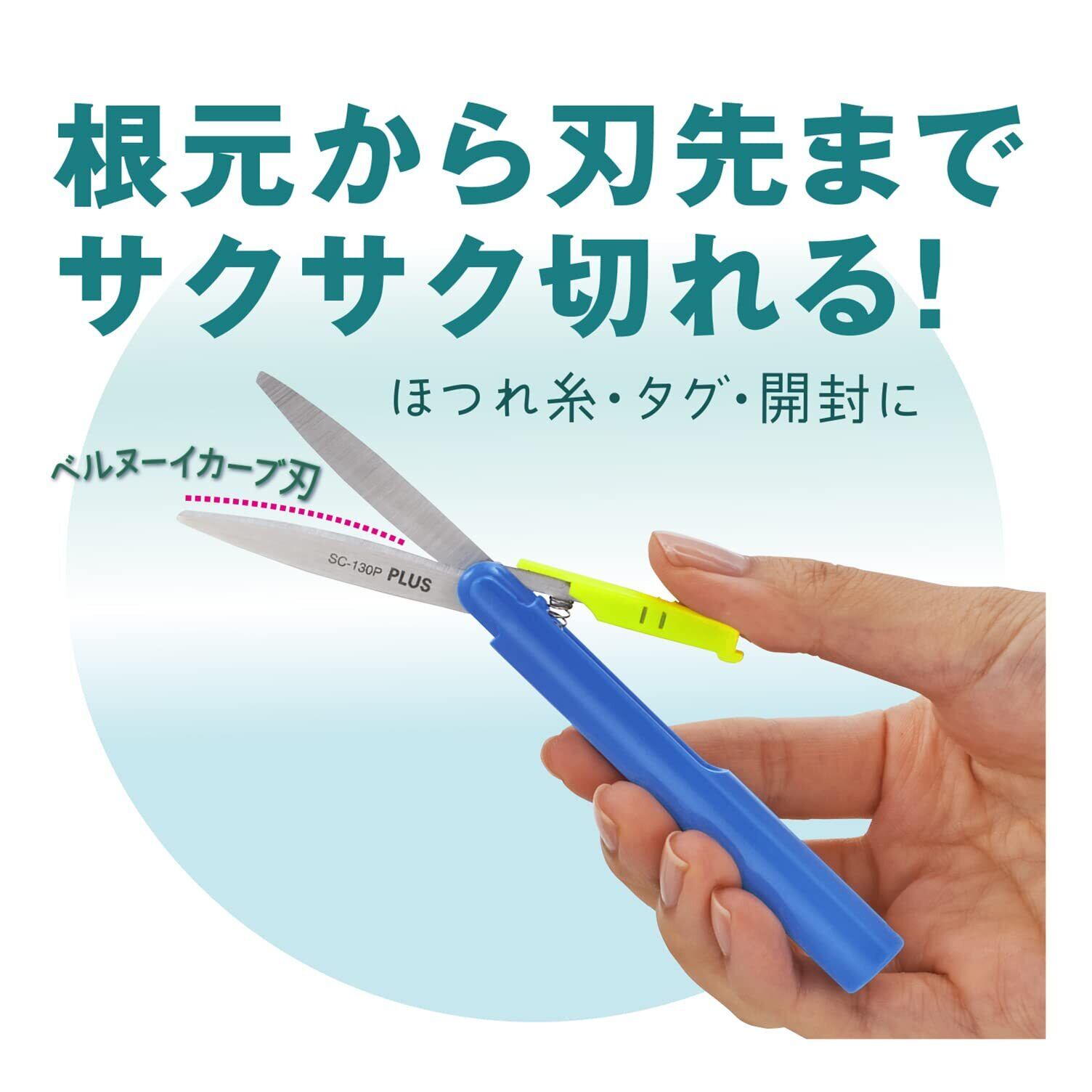 かさばらない「携帯性」・ほつれ糸も切れる「切れ味」・サッと使える「操作性」、開封に欠かせない「刃渡り」。すべてを兼ね備えた携帯はさみです。