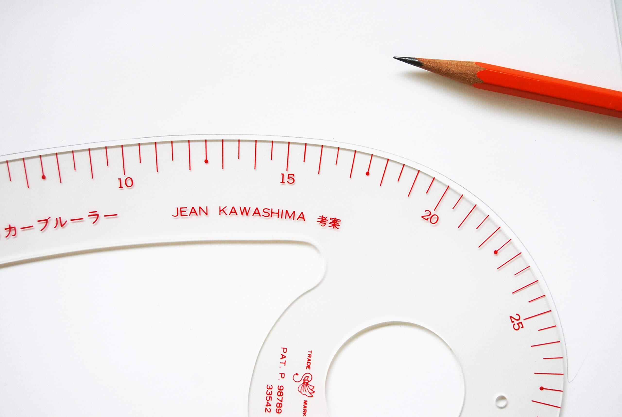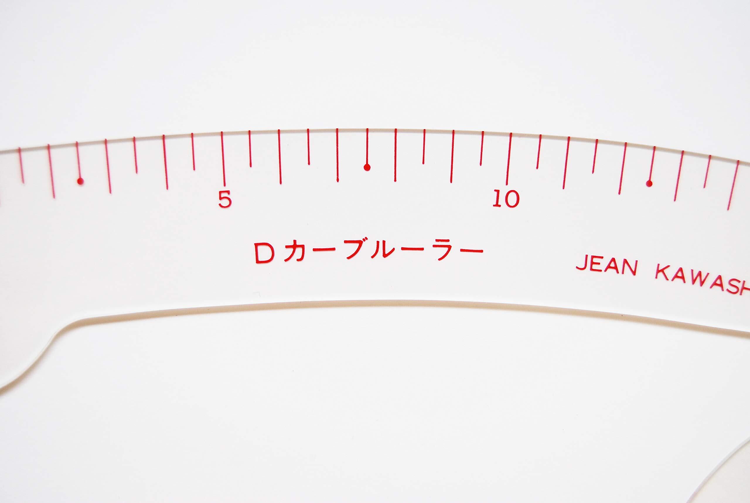 “D"はDeep(深い)の頭文字をとったもので、袖ぐり、襟ぐりなどくりの深い箇所の作図のときに、また曲線の長さを計れます。 型紙をおこすのに結構めんどうなのがカーブライン。 普通の定規では上手く描けずお困りの方も多いと思います。 そんな方の強い味方Dカーブルーラー! Dカーブルーラーを使えば簡単にカーブラインを引くことができます。
