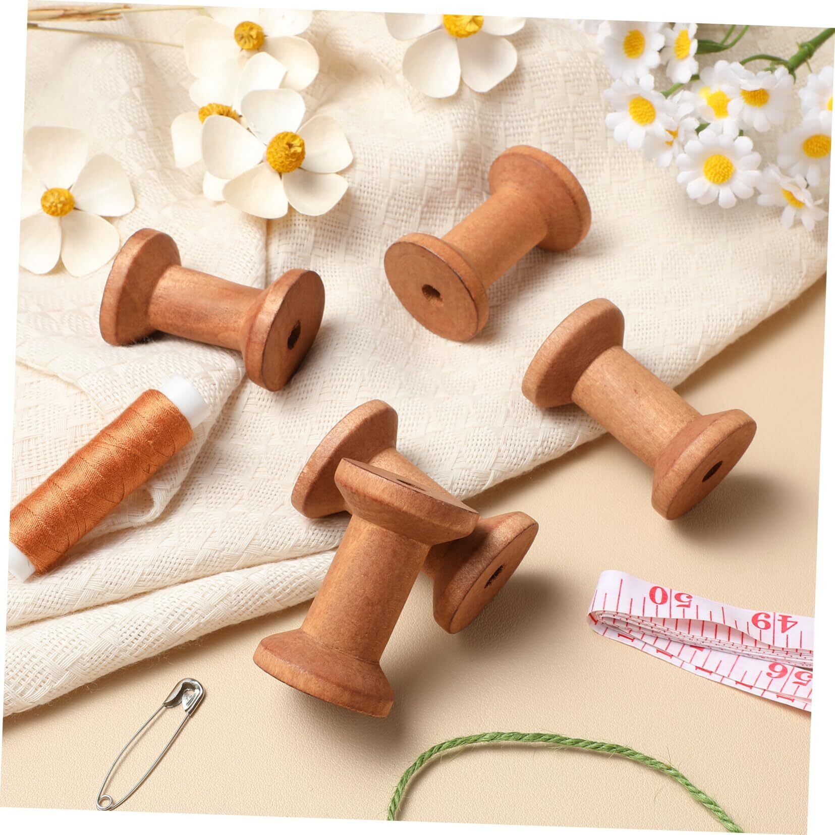 レトロな魅力: これらの木製糸スプールは木目調のモチーフを示し、素朴で温かみがあり、縫製プロジェクトに自然な美学を吹き込みます、刺繍糸スプール、木製スプール