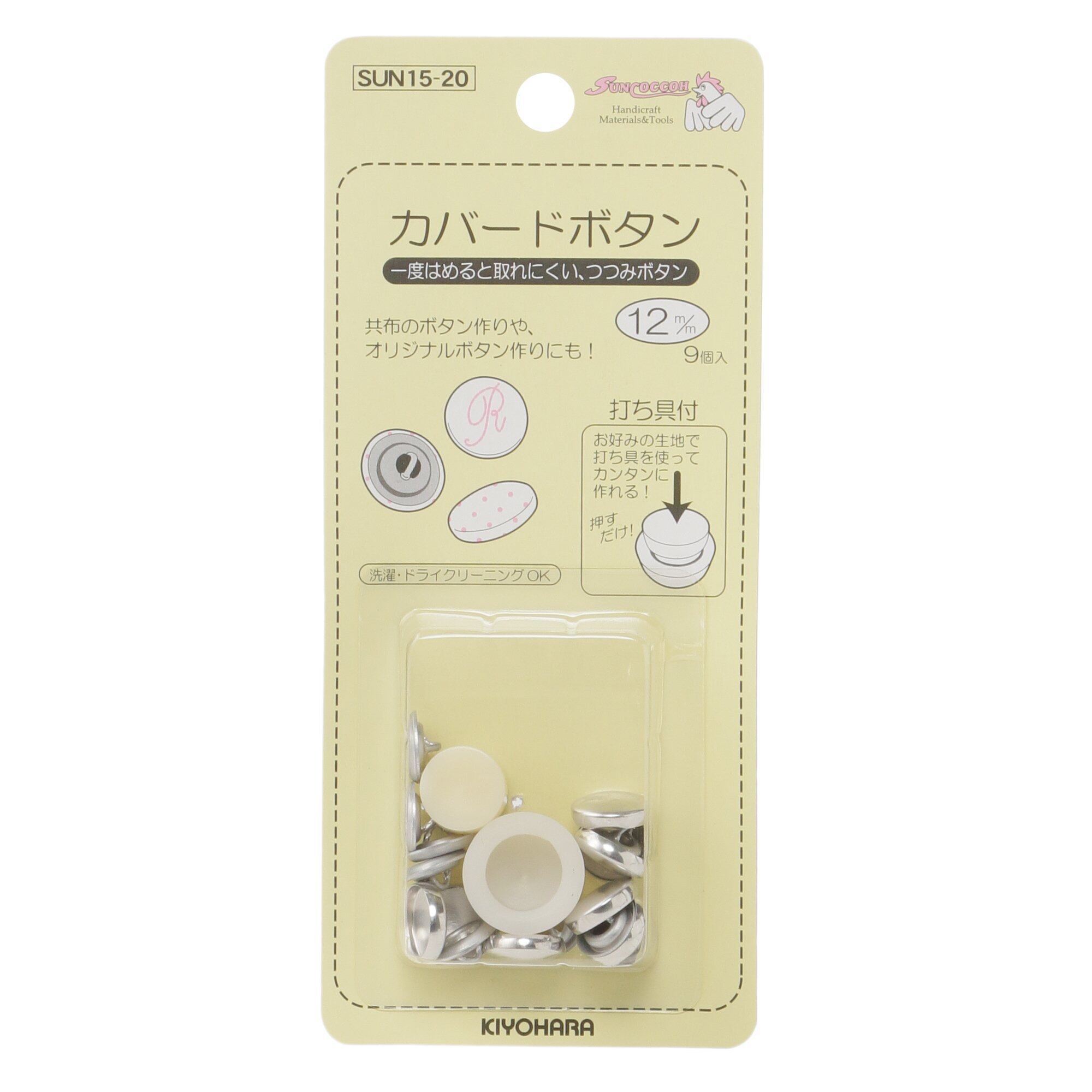 KIYOHARA サンコッコー カバードボタン打ち具付 9個入り 直径12mm SUN15-20