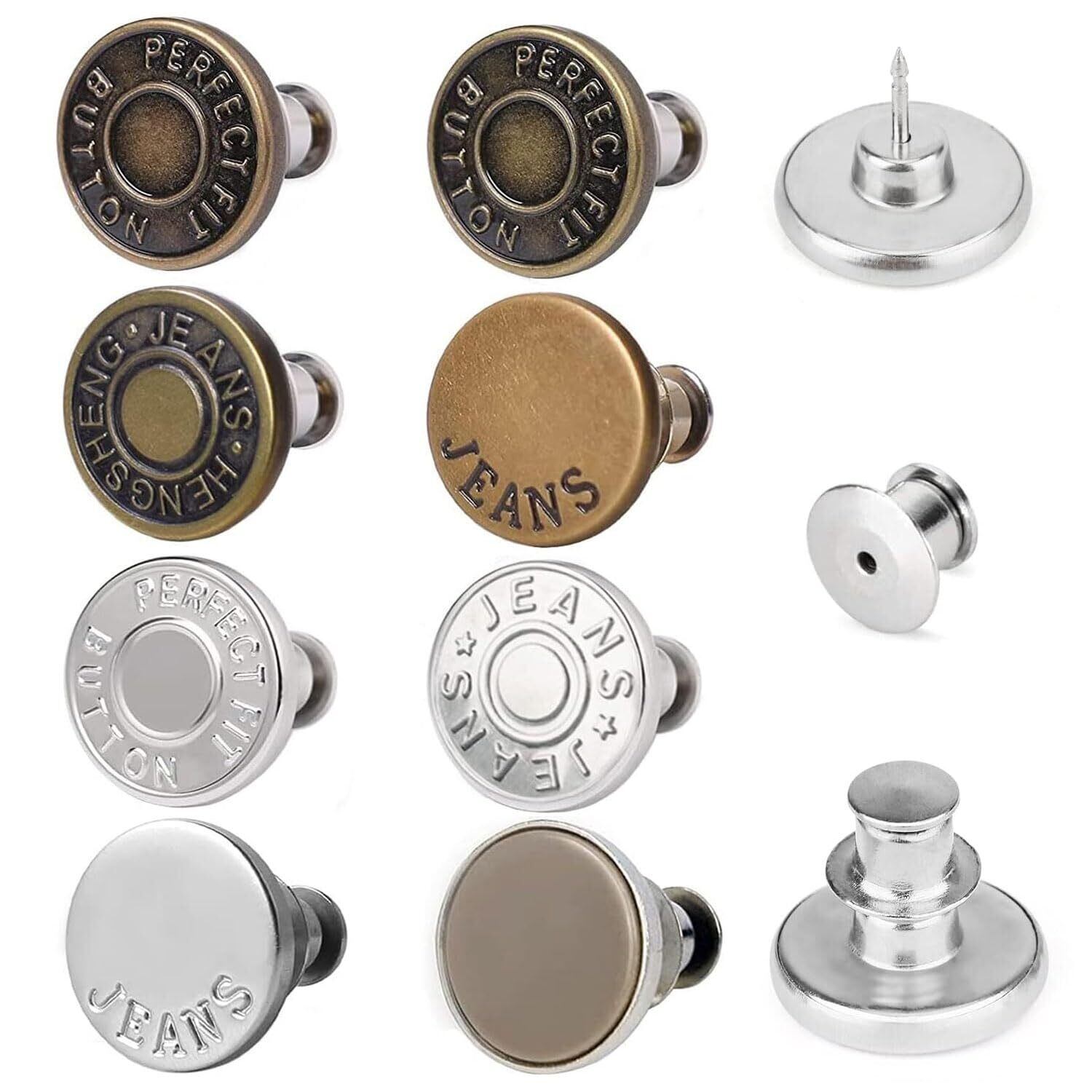 ウエスト 調整 ボタン ウエスト アジャスター ジーンズ調整ボタン メタルジーンズボタン ウエスト調整ボタン シームレスボタン ジーンズ 取り外し可能、装着簡単、縫製不要 ウエスト調整ピン 交換用ボタン 調整可能メタルボタン 交換用ピース(1セット8個入り)