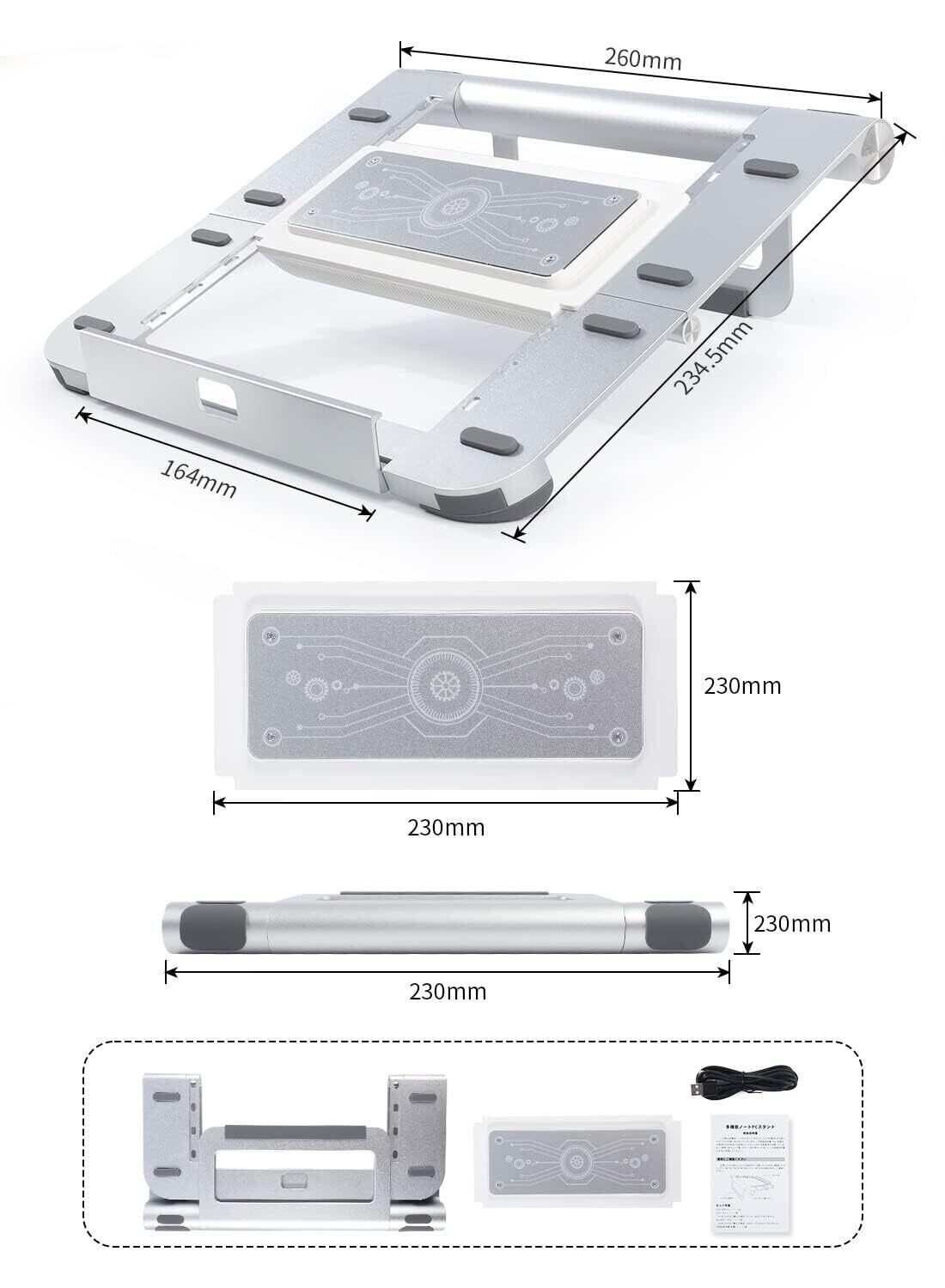 ノートPCスタンドと冷却台が一体化し、様々なデバイスに使えるマルチPCスタンドです。角度を変えるなどのPCスタンドとしての機能はもちろん、冷却機能や変形機能も持ちます!