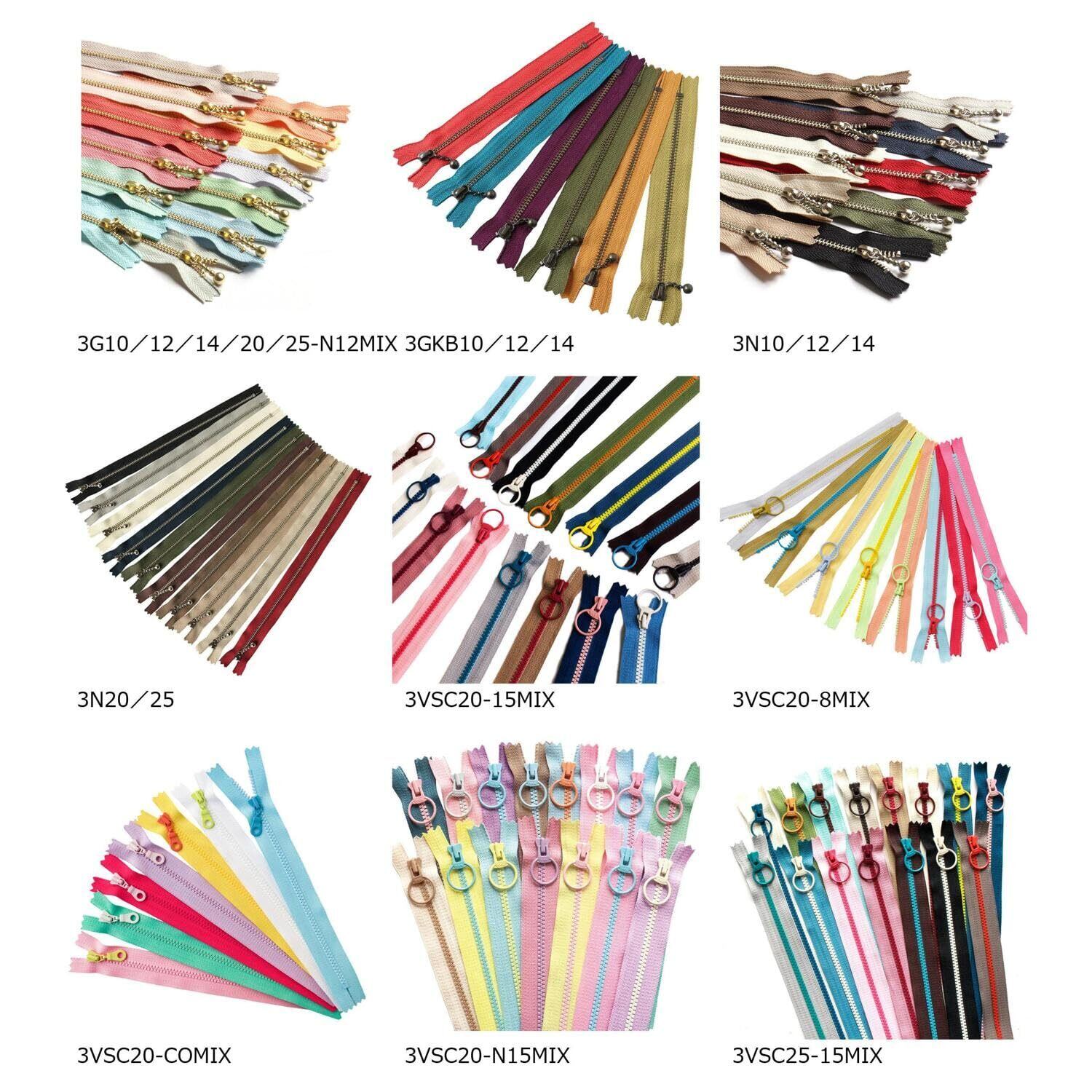 Y.K.K ポーチ用カラフルファスナー 5色セット 10cm ミルキー 3CF10-COMIX-2