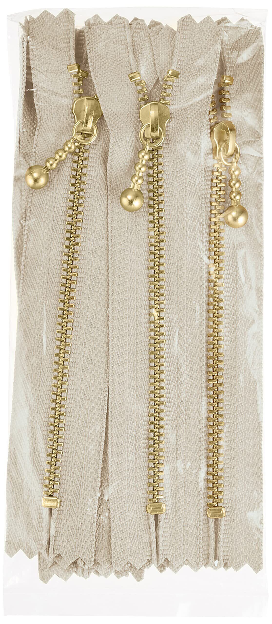 Y.K.K ゴールド 玉付き ファスナー 止め 10本入 長さ12cm #572 濃いベージュ 3MGC-12