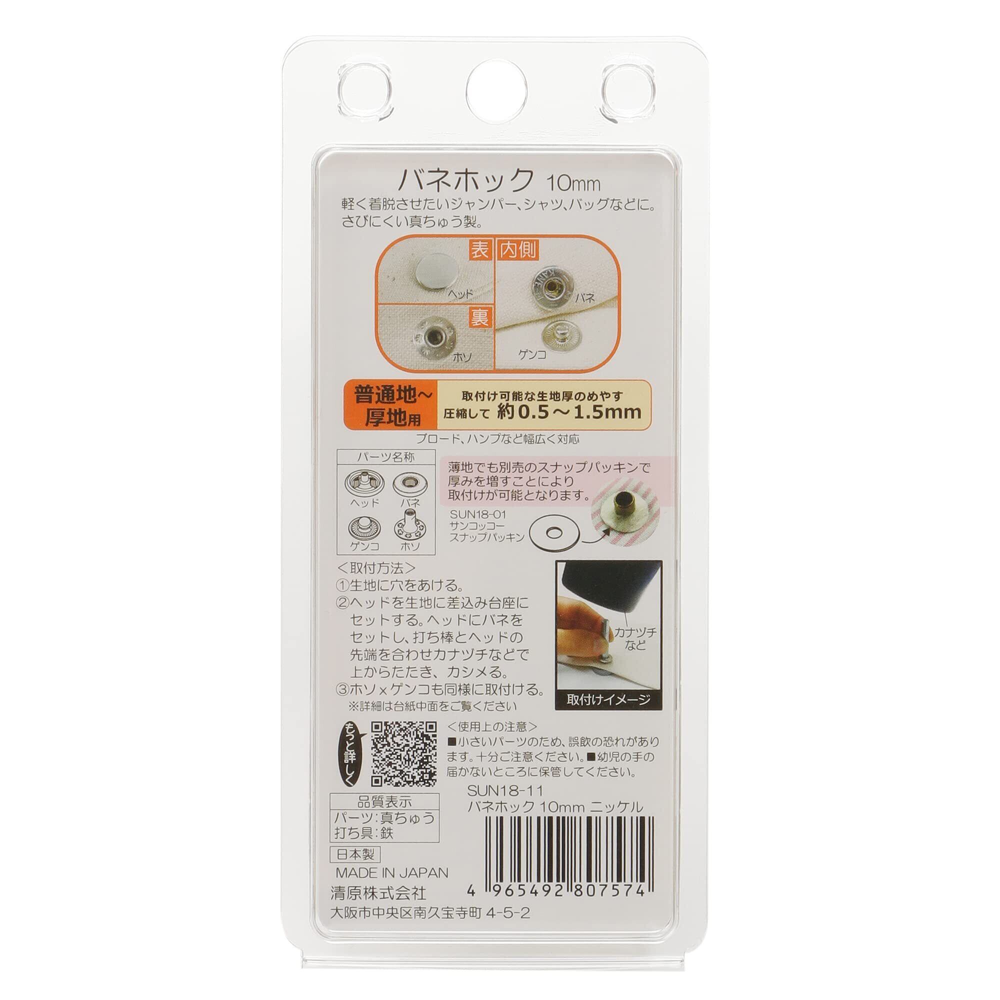 KIYOHARA サンコッコー バネホック 6組入り 直径10mm ニッケル 打ち具付き SUN18-11
