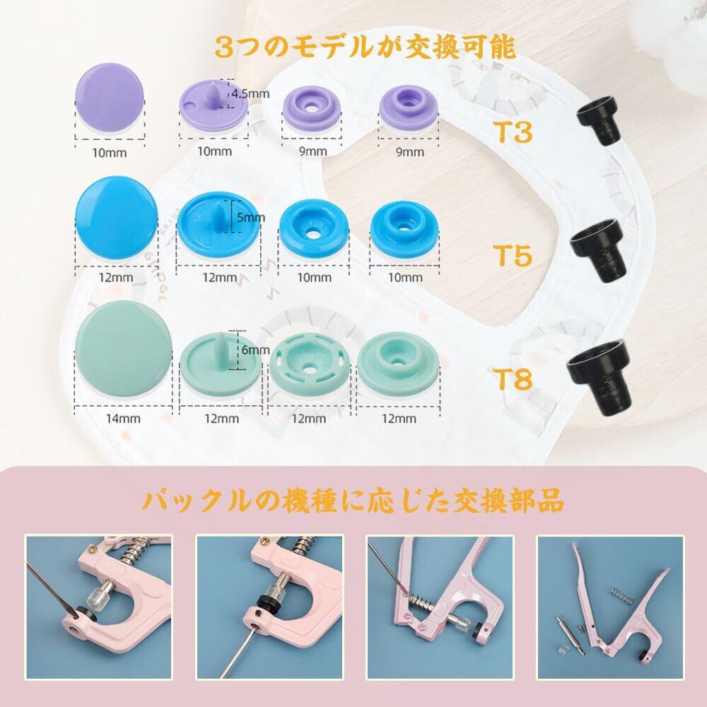 ハンディプレス セット 専用ハンティプレスセット 工具セット T8 T5 T3に対応 専用ハンティプレスセット 操作簡単 取付簡単 手芸 裁縫用 衣類 シャツ ロンパース ビニール袋 (ピンク)