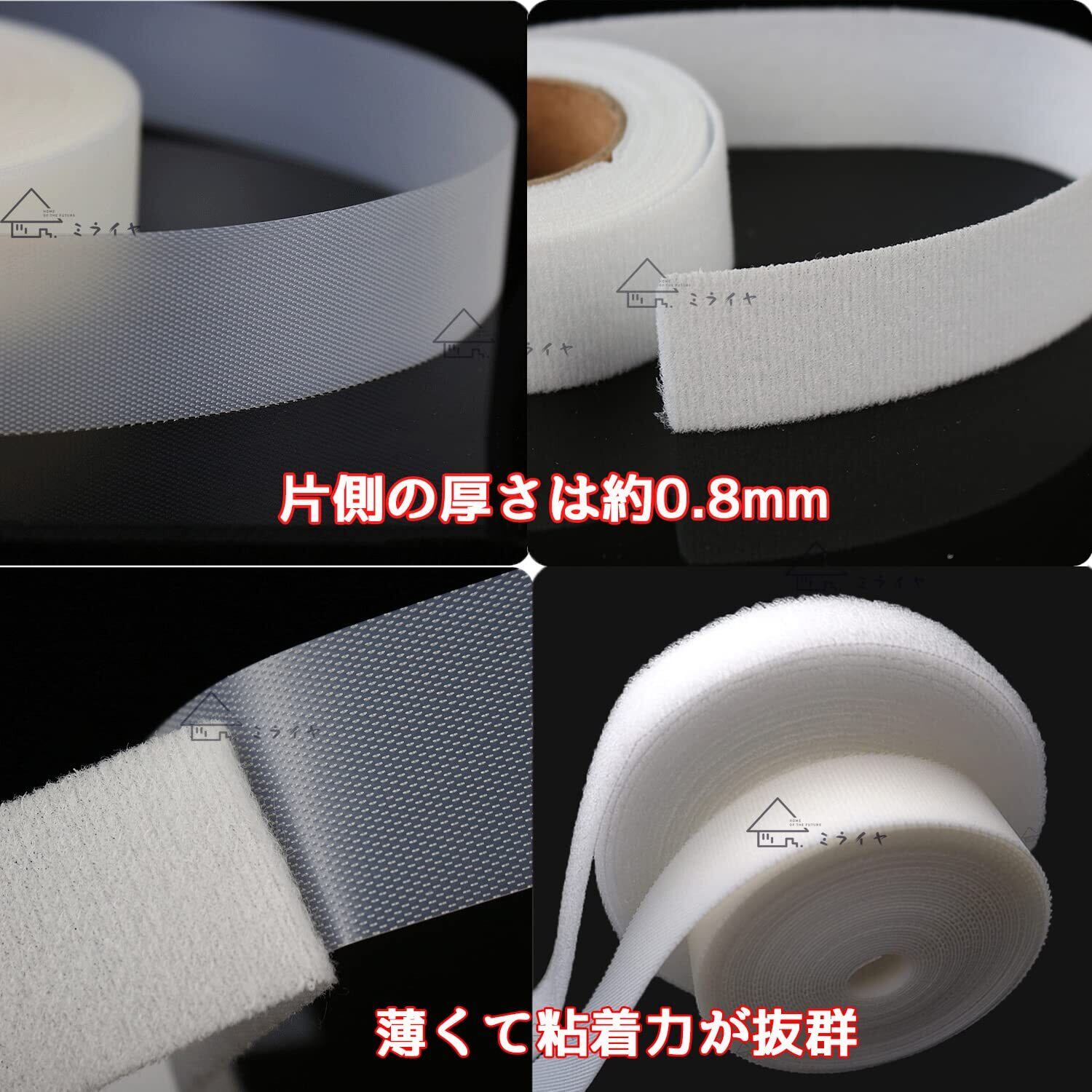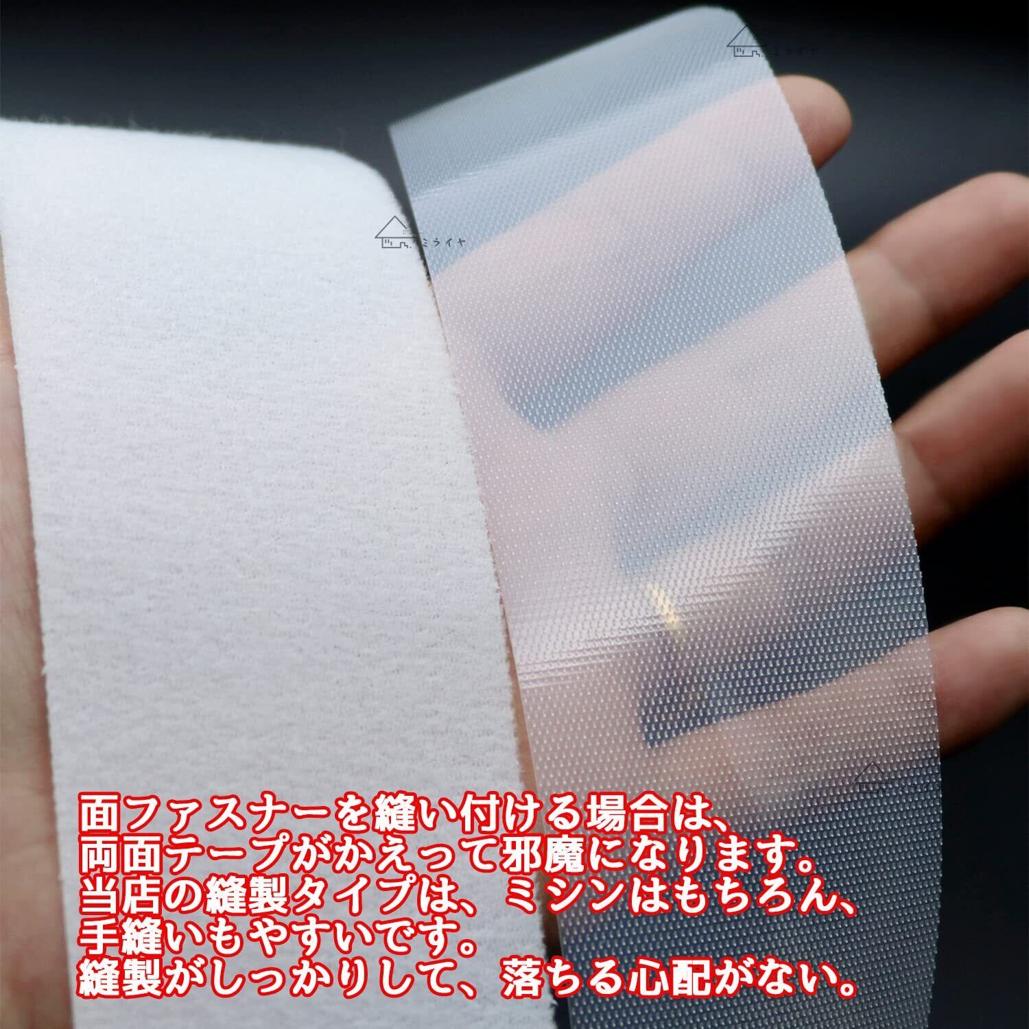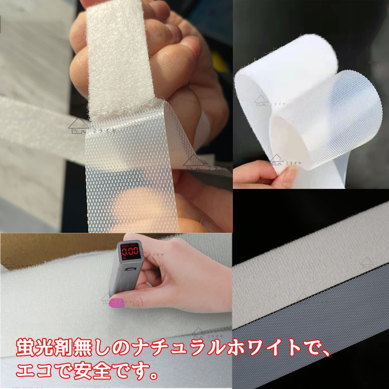 ミライヤ 極薄 柔らかい ドール 面ファスナー ベルクロ フック&ループのセット マジックテープ 超強力 多用途 手芸 縫製用 裁縫用 裏粘着剤なし 手縫い・ミシン用 ナチュラルホワイト オスメスセット(幅5cmX長さ1M)