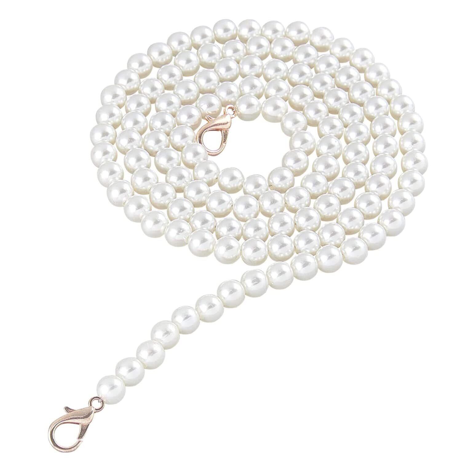 バッグ チェーンベルト 交換用 パールストラップ 全長約120cm 肩掛けチェーン ストラップ 付け替え 人工真珠 DIY アクセサリーパーツ ハンドバッグ ショルダーバッグ