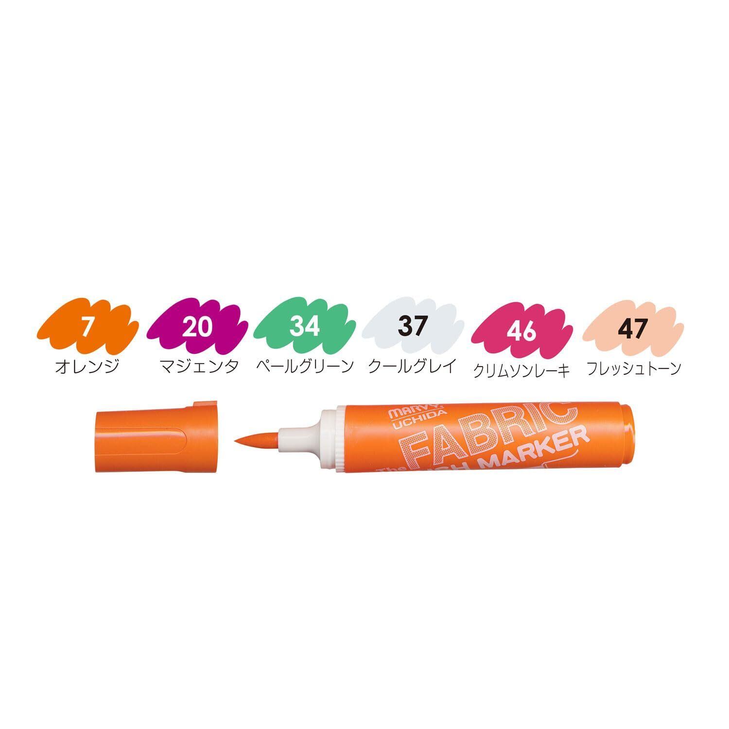 全24色の布用耐水性顔料系インクマーカー。淡い色の重ね塗りで微妙なカラーも表現可能。太筆ペン先タイプ。