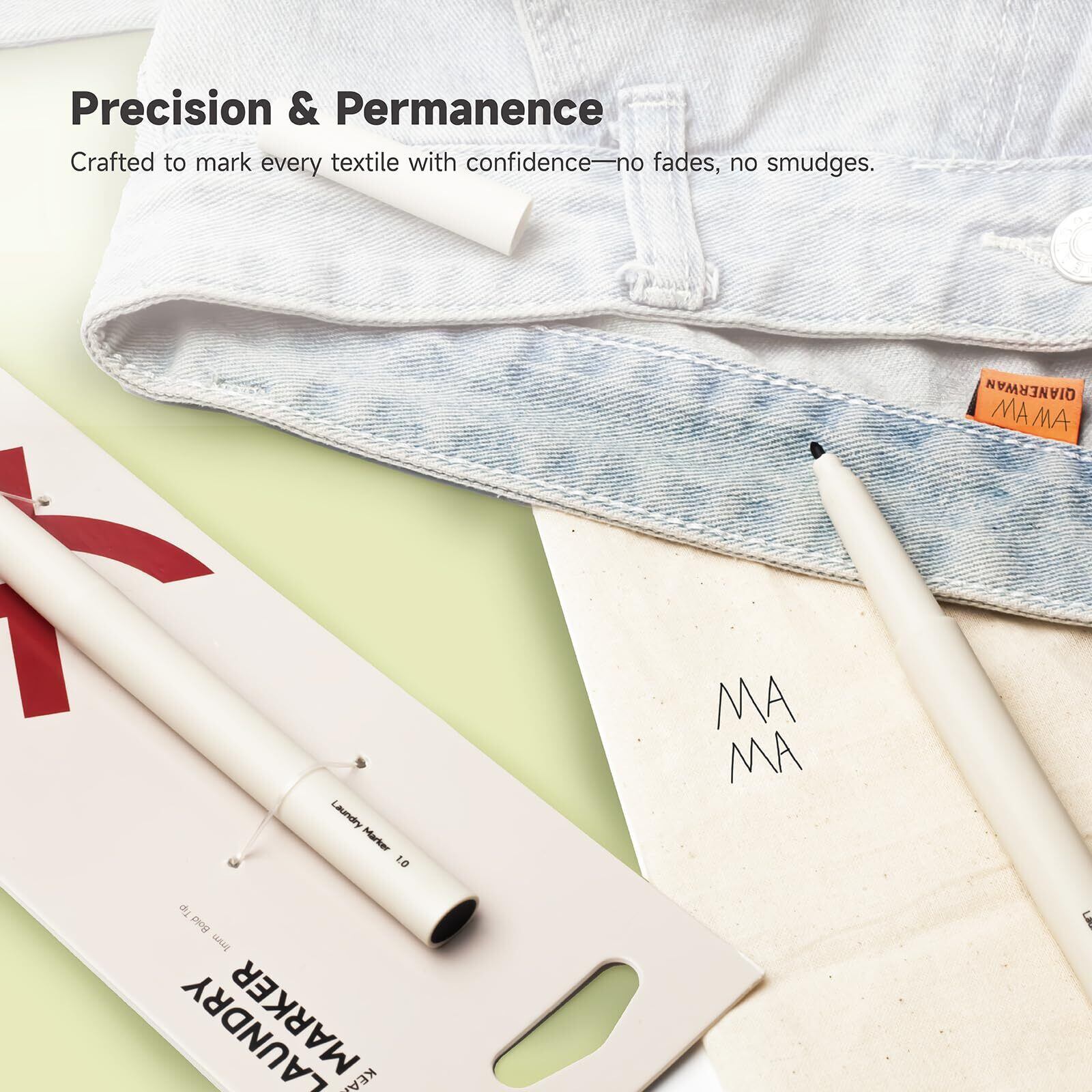服のタグや布地への細かい文字書きに最適。にじまず・滲まない特殊インクで、クリアなラインを実現します。