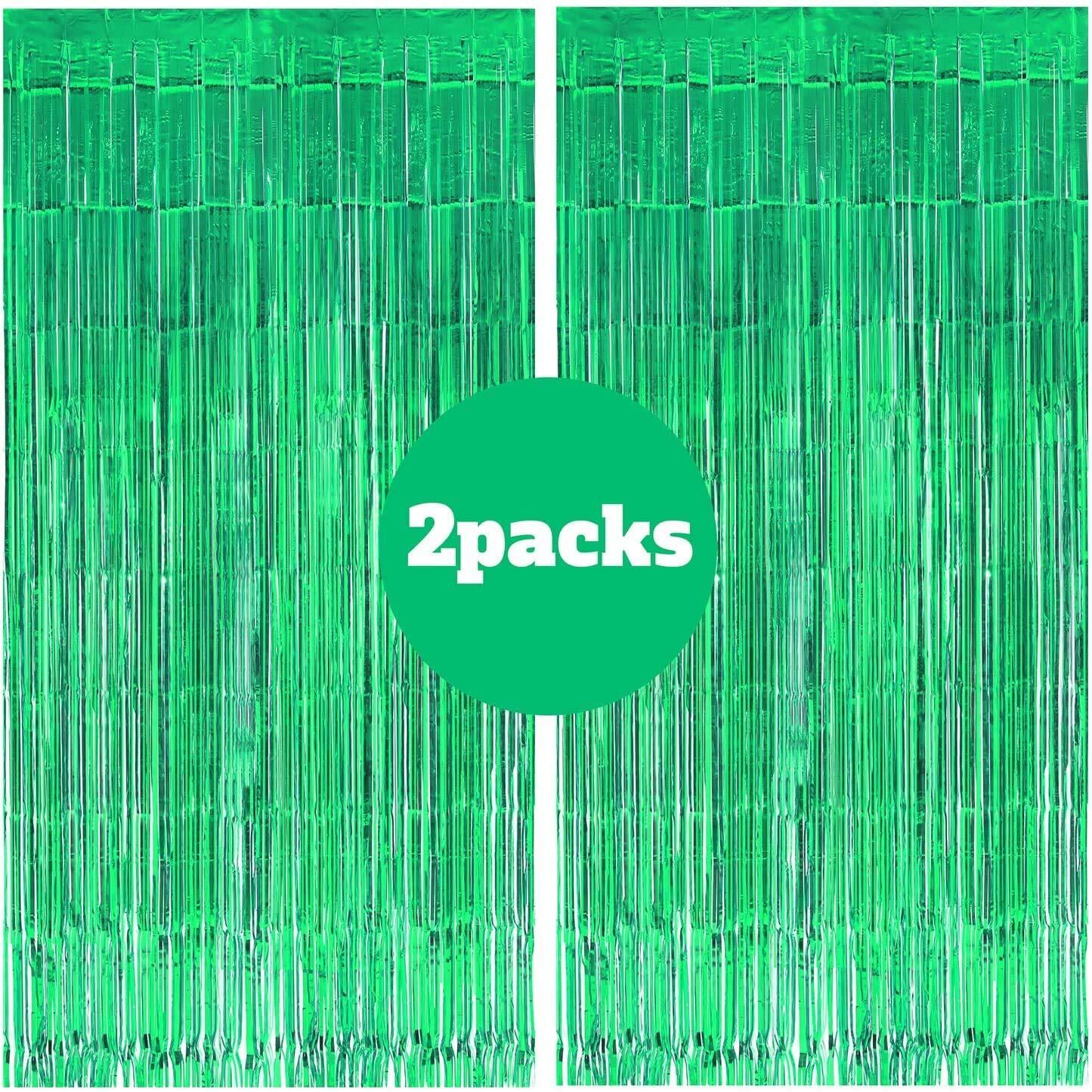 「2個セット」キラキラなタッセルカーテン 華やかな金属感 クリスマス パーティー用カーテン ウェディング 小道具 誕生日 写真背景 デコレーション イベントの装飾(グリーン)