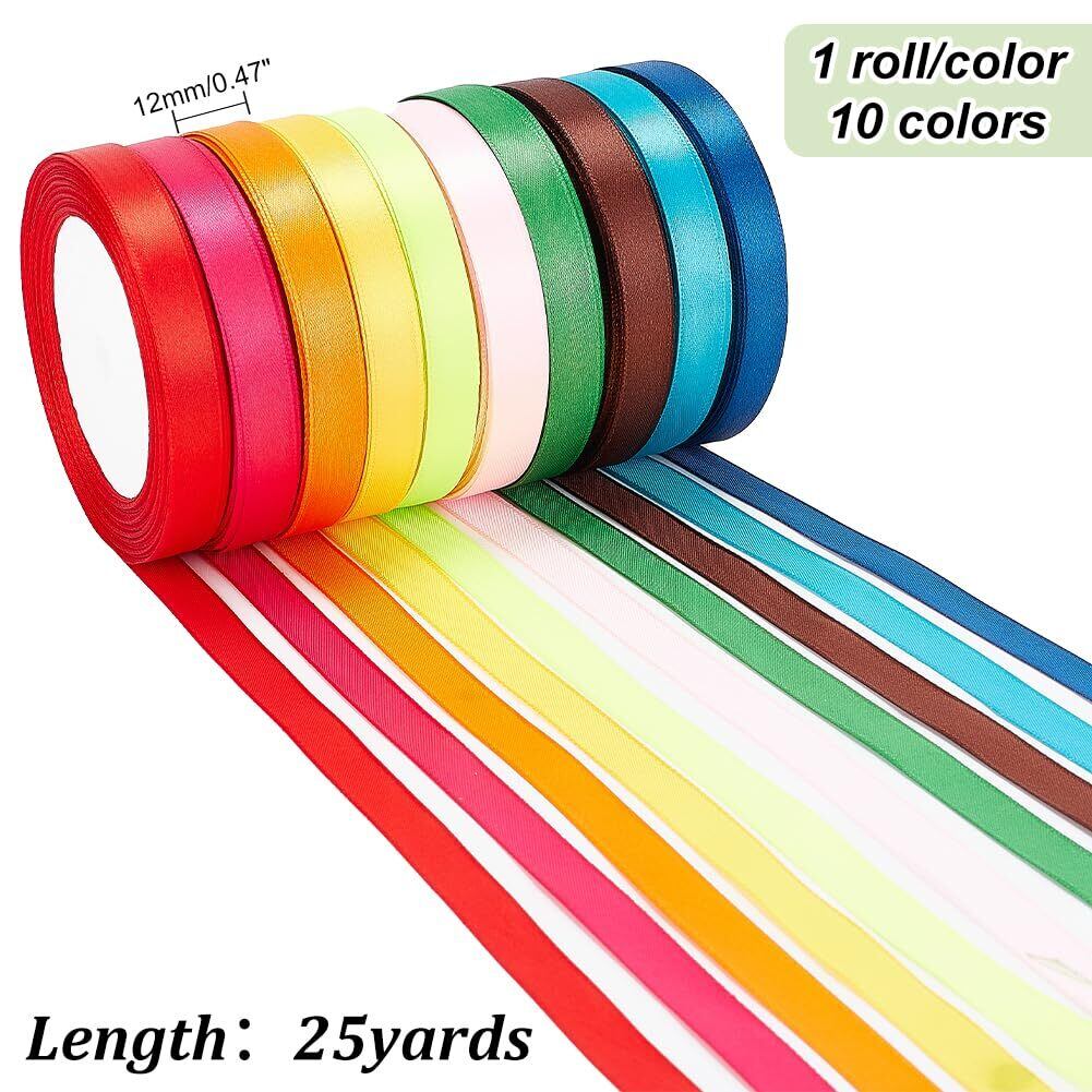 PH PandaHall 220m 12mm ミックス 10巻きセット 片面 サテン リボン 10色 DIY用 手芸 雑貨 工芸品 飾り グログラン 約22m/巻き カラフル 手芸用品 アクセサリーパーツ 手作り