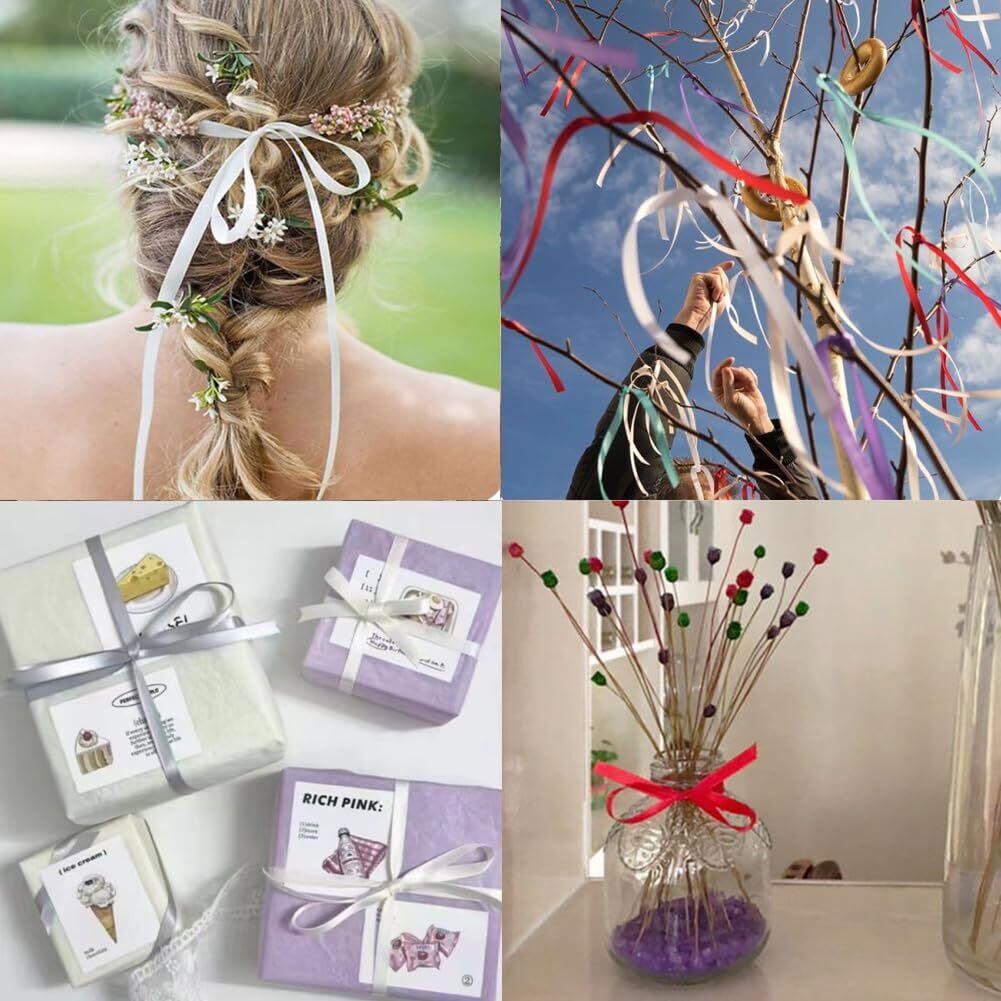 91メートル 大容量:たっぷり91M入った、お徳用パック!これらの両面サテンリボンは大人気のギフトラッピングアクセサリーです。ハサミで簡単にカットできて誕生日プレゼント、結婚祝い、記念日のギフト、お土産、ホリデーギフト、招待状、手工芸品など、あらゆる種類のギフトボックスの包装に適しています