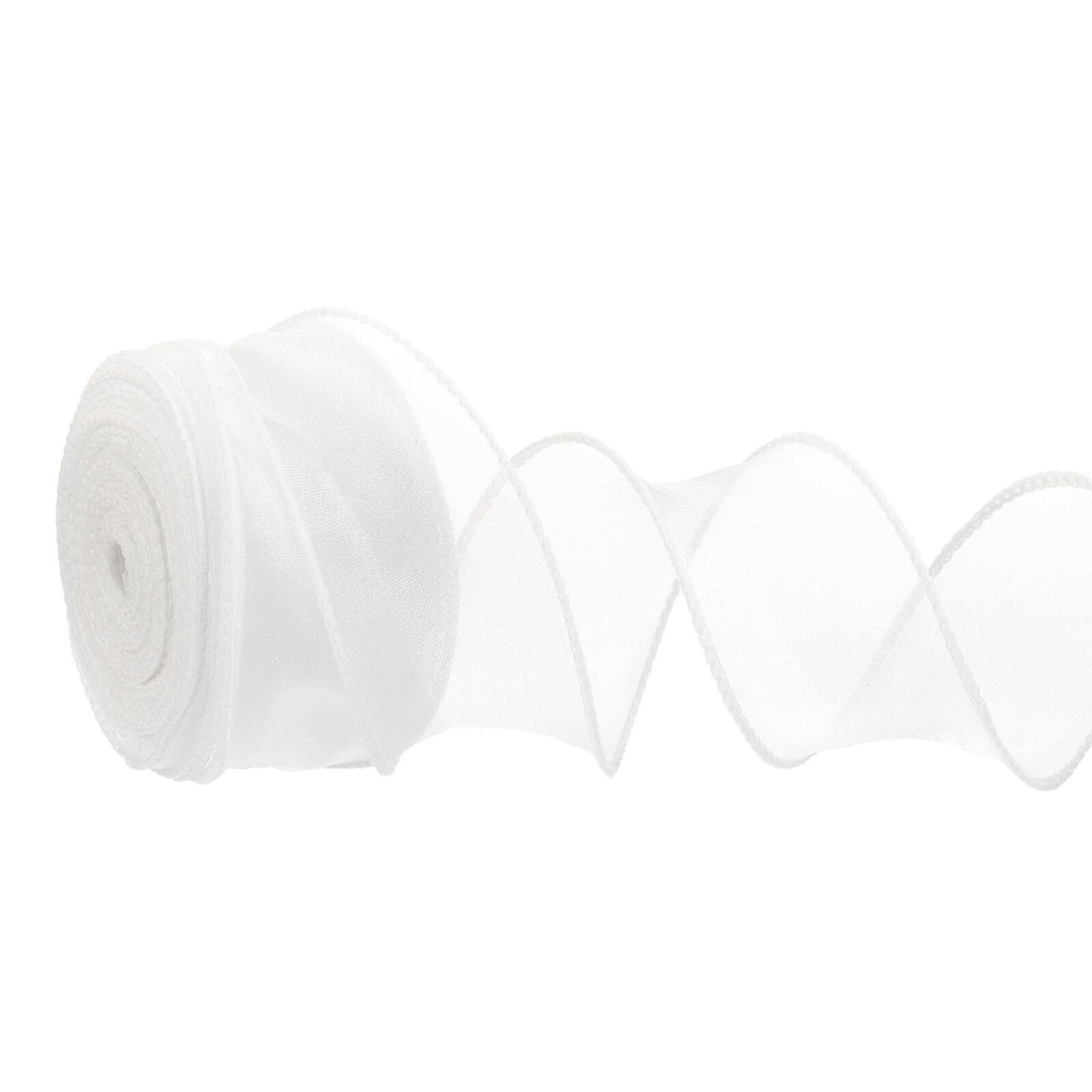 PATIKIL オーガンジー リボン 4cm x 9.1M シアーワイヤー入り 手芸 ギフト ラッピング テープ (ホワイト)