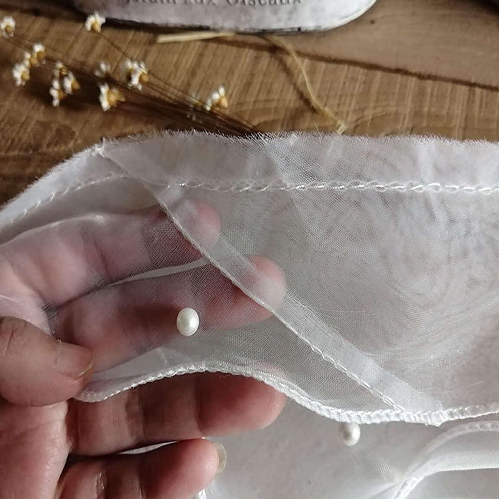 Ourkens オーガンジーリボン 三重 ビーズ付き diy ハンドメイド レースのアクセサリー ウェディングドレス スカートの裾飾り 立体 フリルレースリボン 裁縫素材 白 幅約10cm 長さ100cm(1-2個縫い目)