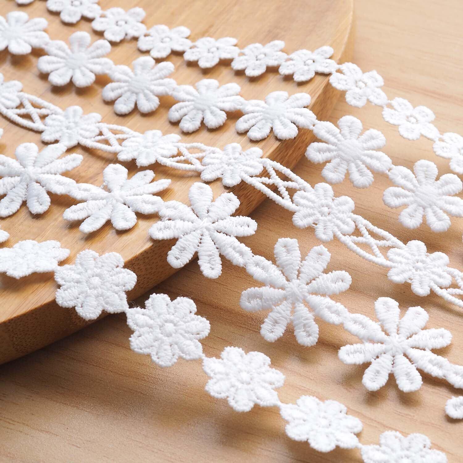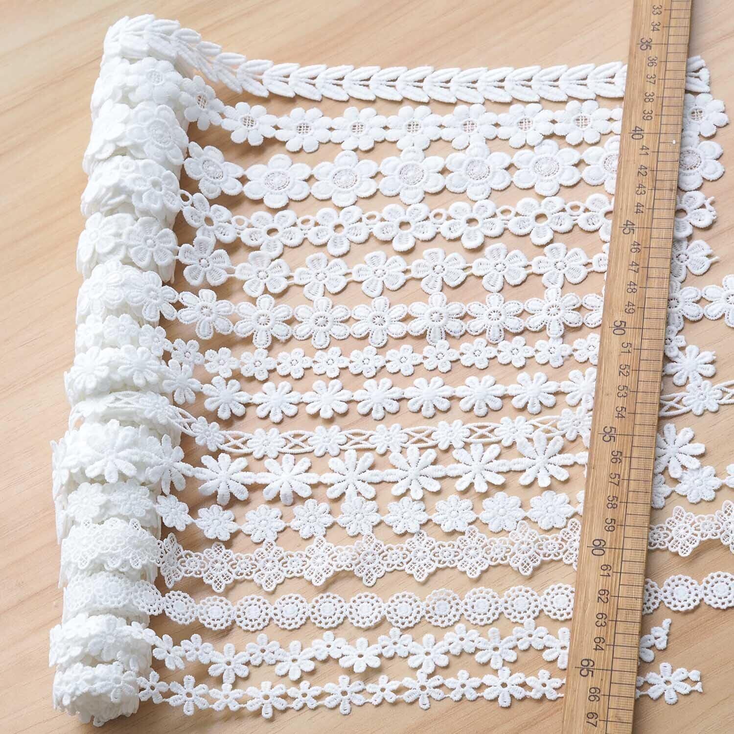 sempiterno 15タイプ ミニ花や木の葉模様のレース生地 ミルクシルク髪飾り刺繍レース シングル長さ約1m DIY補助材料 誕生日 クリスマス ギフト 装飾材料 縫製素材 (ホワイト)