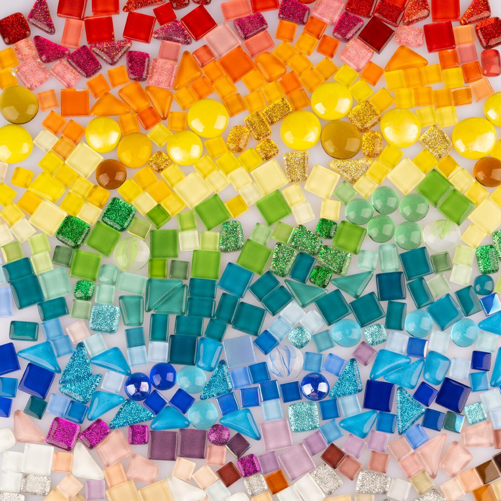 【スーパーバリューパック】三角形、正方形、円形など、さまざまな形や色の不規則な小さなモザイクタイル500グラムは、モザイクアートや手工芸品に最適です。