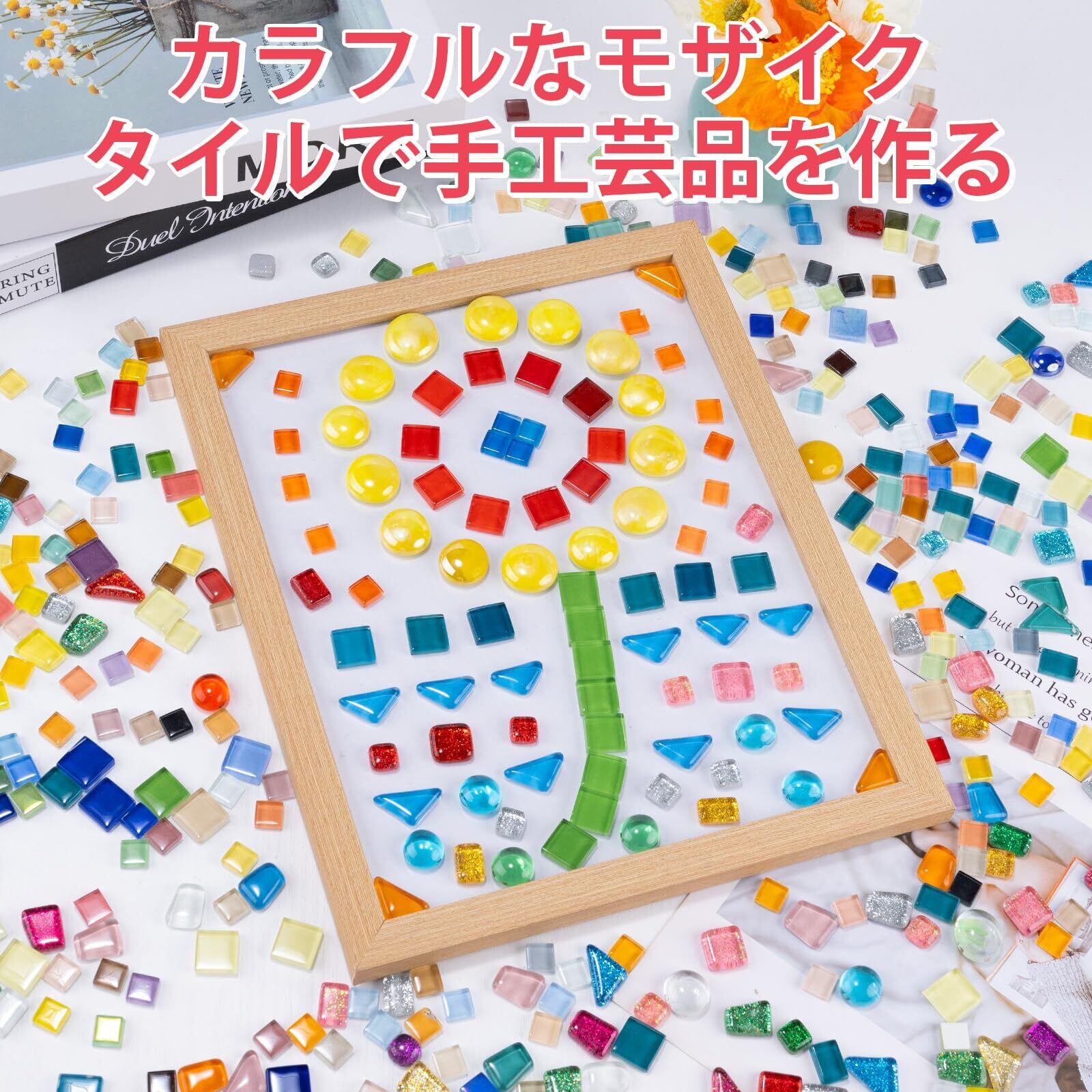 【使い方簡単】このタイルは粘着剤が不要なので、白木工用接着剤や中性ガラス用接着剤などの接着剤(セットには含まれていません)を使って、対象物の表面に貼り付けるだけです。簡単に手芸作品を作ることができます。