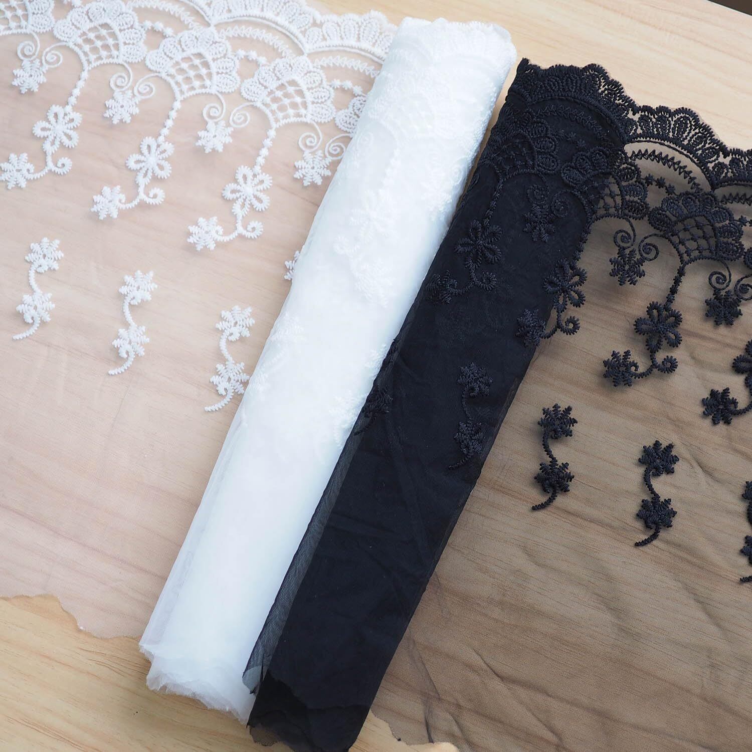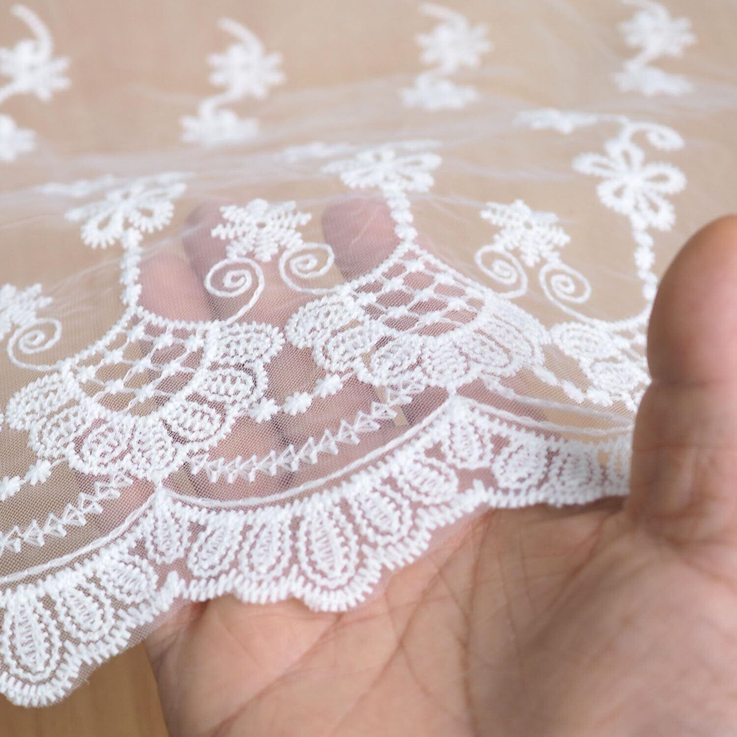 Hymyily 幅35cm x長さ200cm 花刺繍 花柄レース チュール 生地 手芸用品、アクセサリー テーブル掛け、カーテン、ウェディングドレス、DIY、服装装飾に最適 (ホワイト)