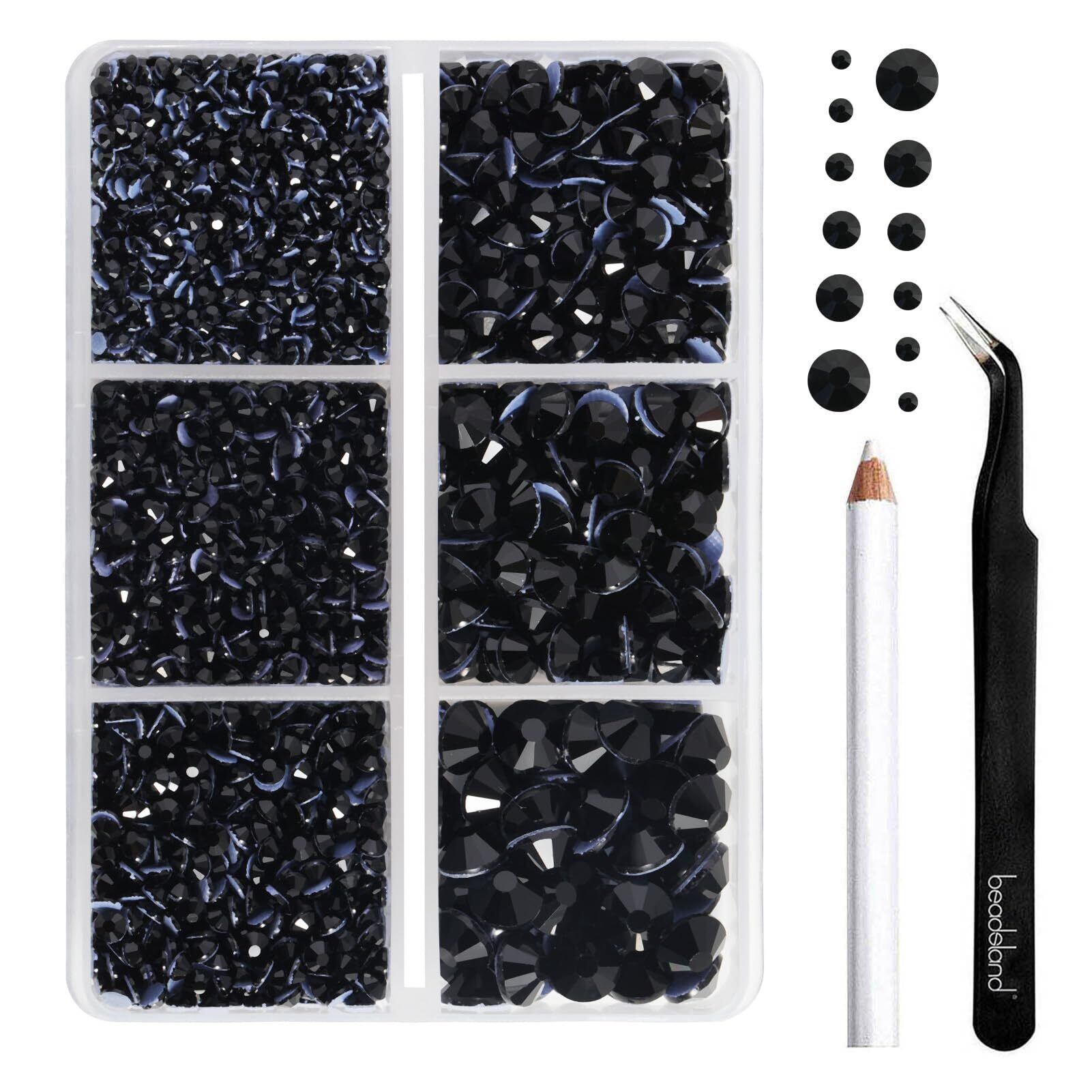 Beadsland(ビーズランド)ホットフィックス ラインストーン 4,000個クリスタルラインストーン キット 6サイズ混合(SS6-SS30)服飾DIY 工芸用 ワックスペンシルとピンセット付き、ブラック