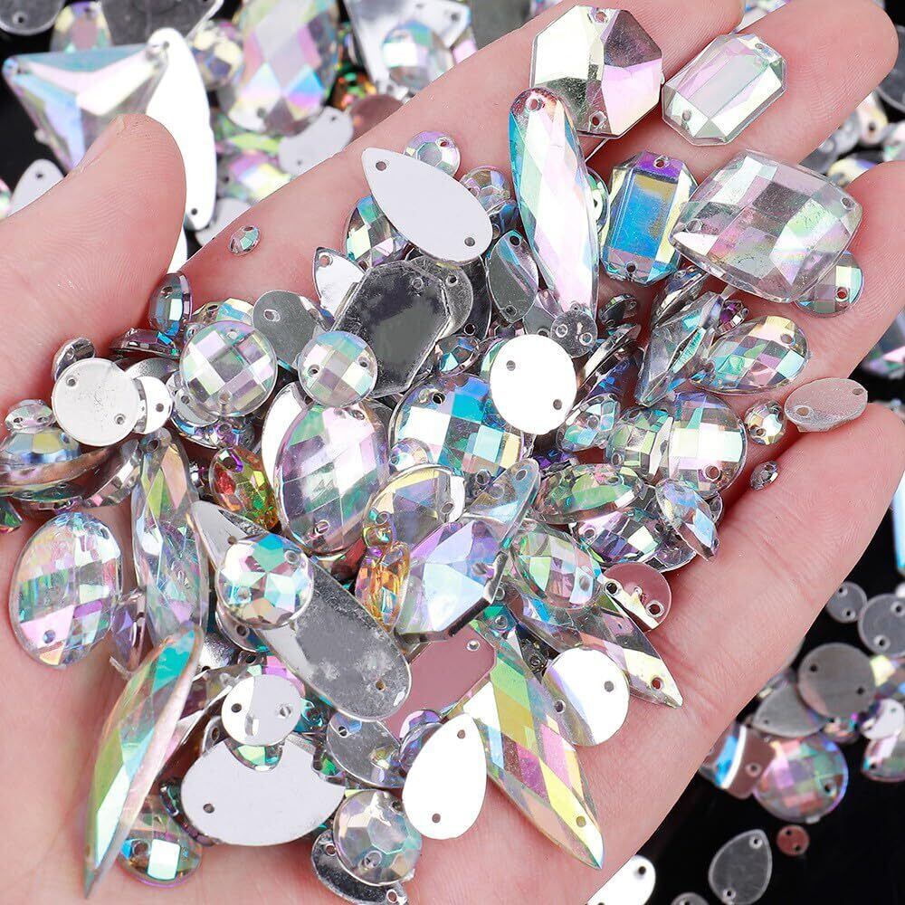 CHENLONB ラインストーン 約200粒 アクリル クリスタル 縫い付け 宝石 キラキラ 2穴 DIY 衣類 バッグ 手芸用品 装飾用品 (ミックスカラー)