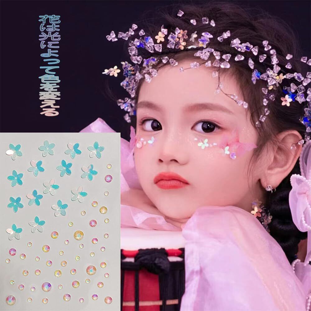 【はがして貼るだけ簡単】このラインストーンは、あらかじめマウントされた自己粘着性です。使いやすく、デザインに合わせて簡単に剥がしたり貼ったりすることができます。顔シール キラキラ、何度も繰り返し使用することができます。