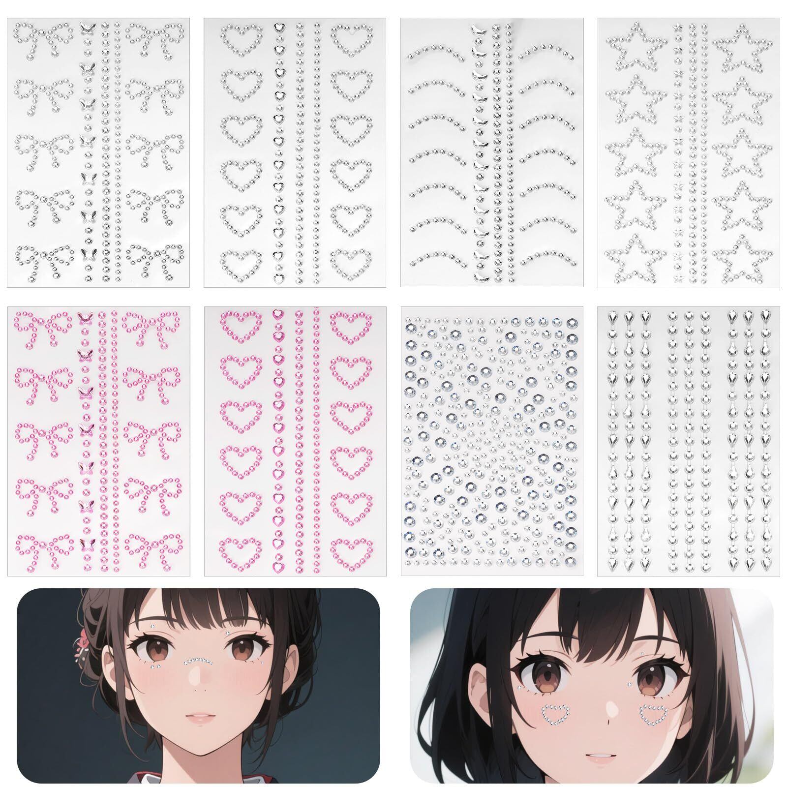 【キラキラしてかわいい】フェイスラインストーンセットにはシルバーとピンクの2色のダイヤモンドが含まれており、キラキラし、高級感のあるメイクを作ることができ、コンサートのメイクにも記念撮影にも最適です
