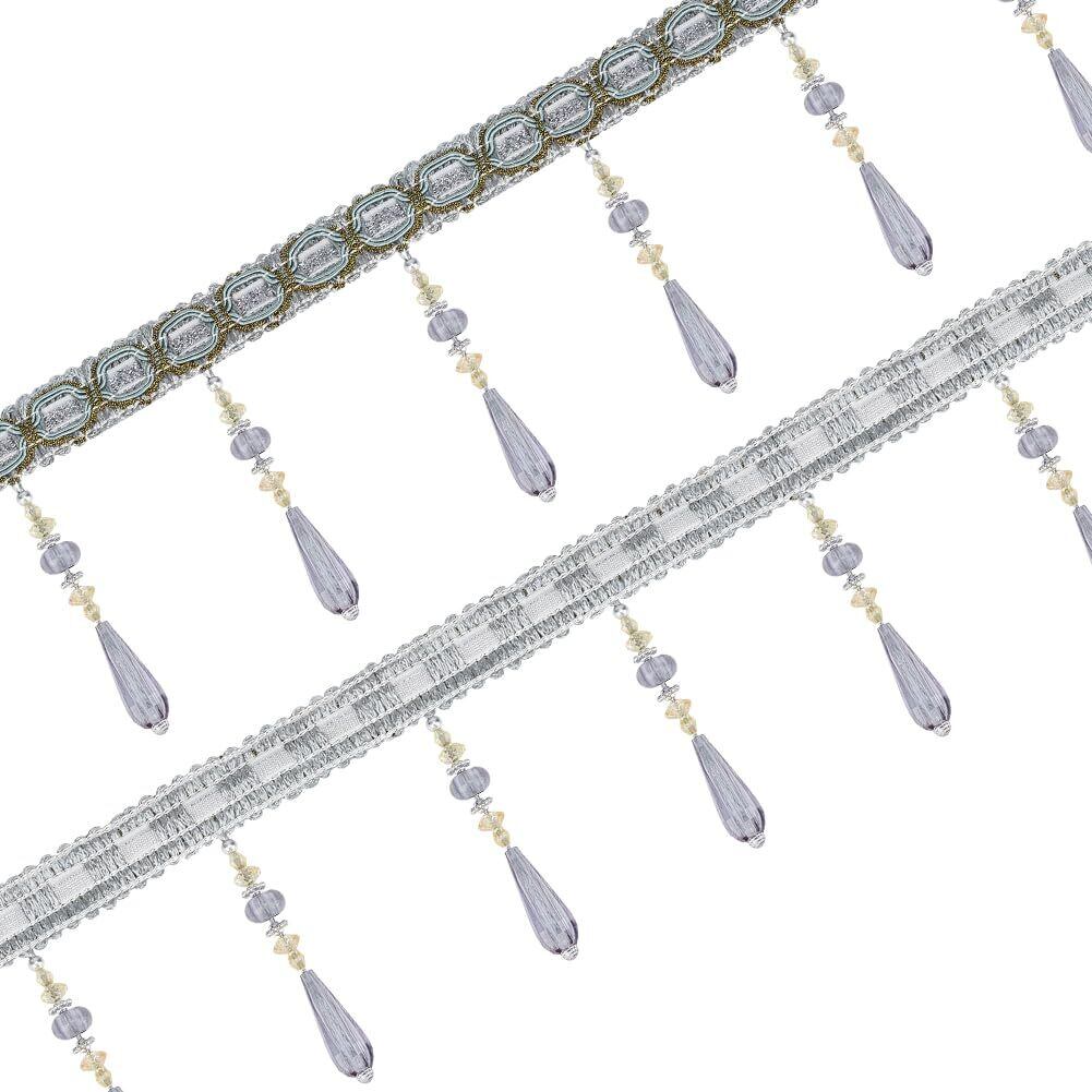 OLYCRAFT 12m フリンジ アクリルビーズ カーテン ポリエステル 吊り下げボール フリンジトリム アクセサリー 手芸用 DIY裁縫 屋内 ホームデコレーション 材料 装飾 布地 グレー