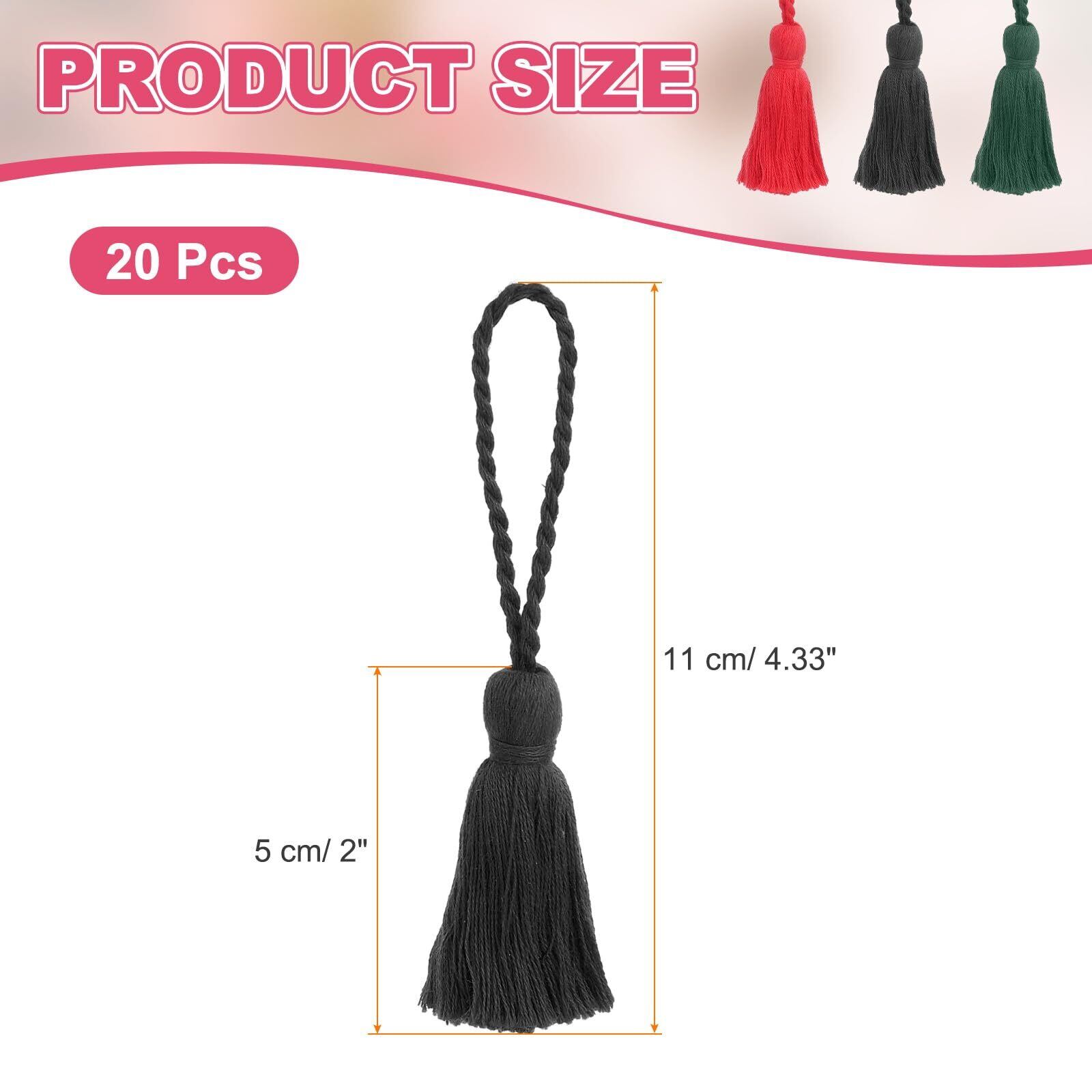 PATIKIL チャンキーブックマークタッセル 20個ハンギングループ小さな手作りソフトタッセルDIYクラフトキーチェーン宝石メイキングハンドクラフト卒業製作 4.3"黒