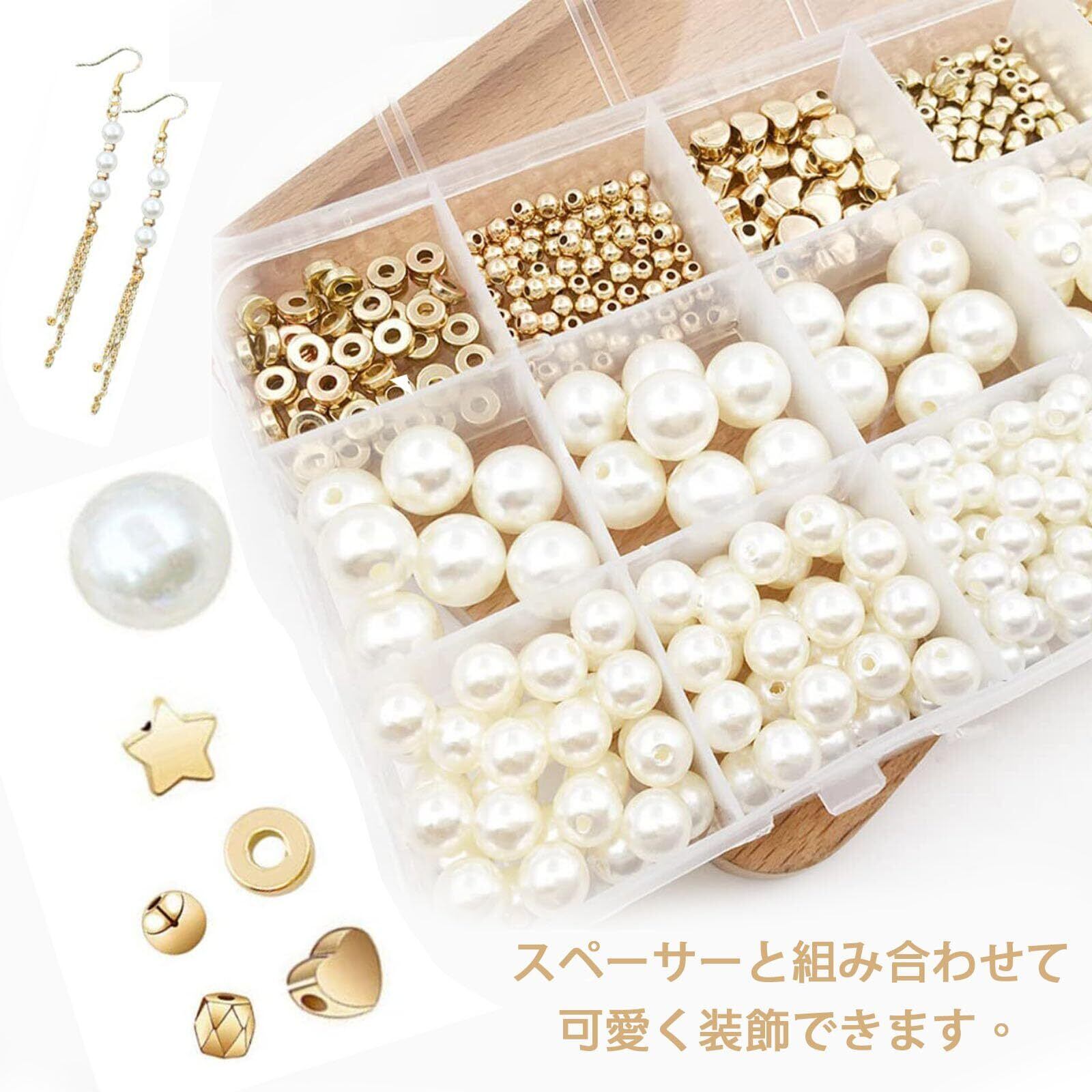 【サイズの多様性】5種類のサイズの真珠と5種類のデザインのアクセサリーがあり、サイズバリエーションとスペーサーが豊富なので、いろいろなアクセサリー作成にピッタリです。
