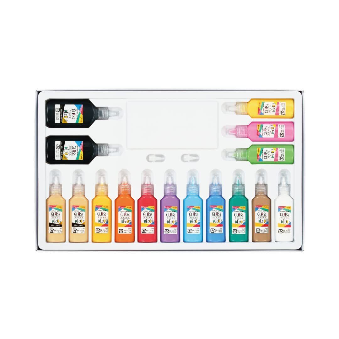 縁取り兼用ブラック(40ml)×2本/縁取り兼用ゴールド(22ml)×2本/サニーイエロー(22ml)/オレンジ(22ml)/ポピーレッド(22ml)/バイオレット(22ml)/スカイブルー(22ml)/コバルトブルー(22ml)/ロイヤルグリーン(22ml)/ソフトブラウン(22ml)/スノーホワイト(22ml)/スパークルイエロー(22ml)/スパークルピンク(22ml)/スパークルグリーン(22ml)