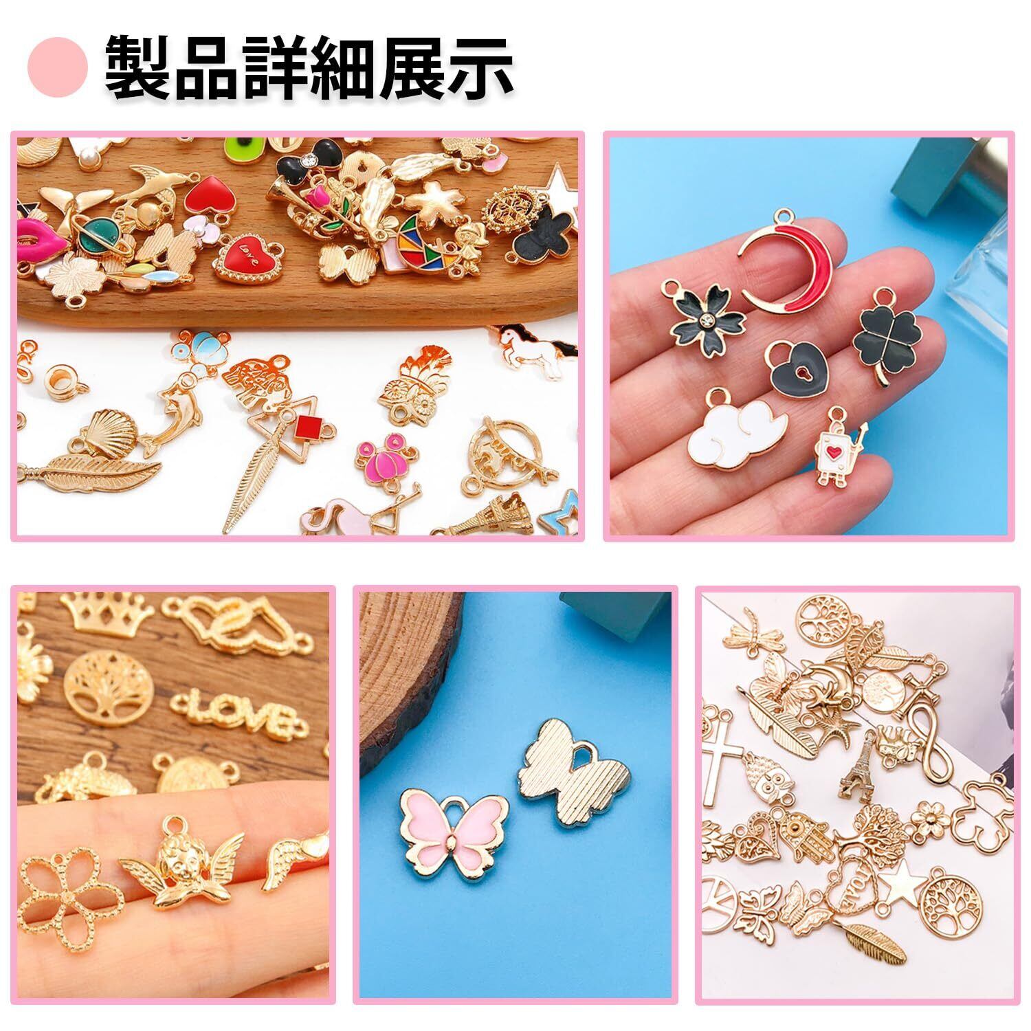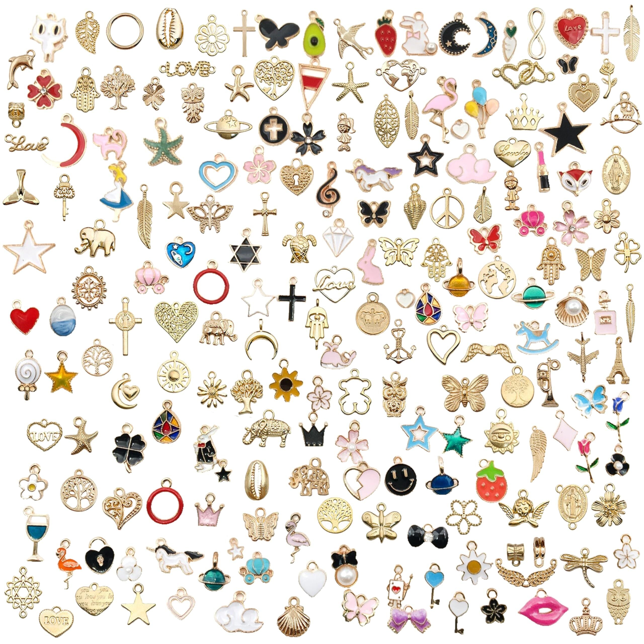 内容量:アクセサリーチャーム 200個セット、金属チャームは多種様式がありますので、星、月、ハートの形、果物など、さまざまなスタイルがあります、自由に組む合わせができます。