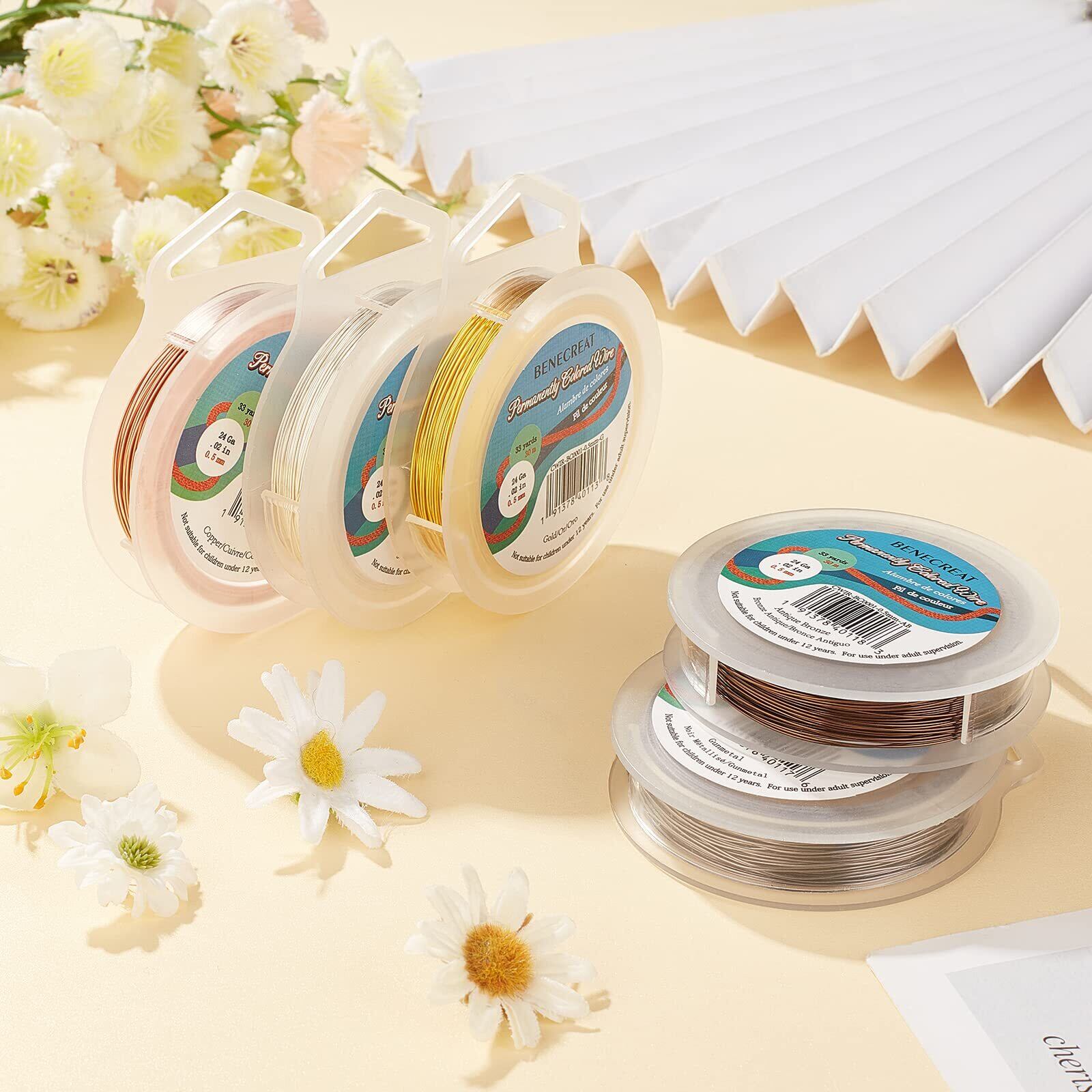 BENECREAT 全長30m線径0.5㎜アクセサリーワイヤー アートワイヤー 光沢感 変色防止カッパーワイヤー クラフト銅線 ジュエリー作り 手芸素材 手作り(ゴールド)