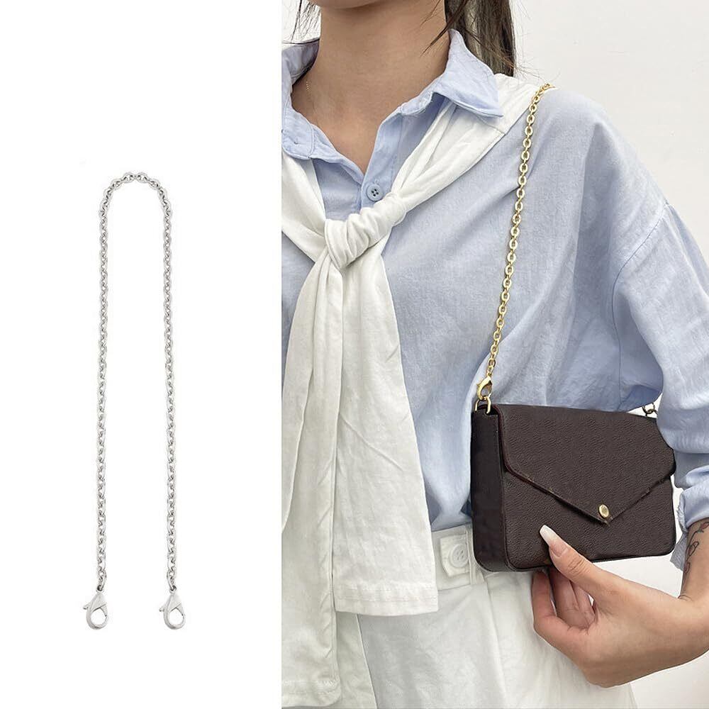 LIANHATA チェーン 交換用 肩掛けチェーン ショルダーバッグ 長120cm 軽い 金属 持ち手 チェーンバッグ ハンドル 調整 (O型チェーン,シルバー)