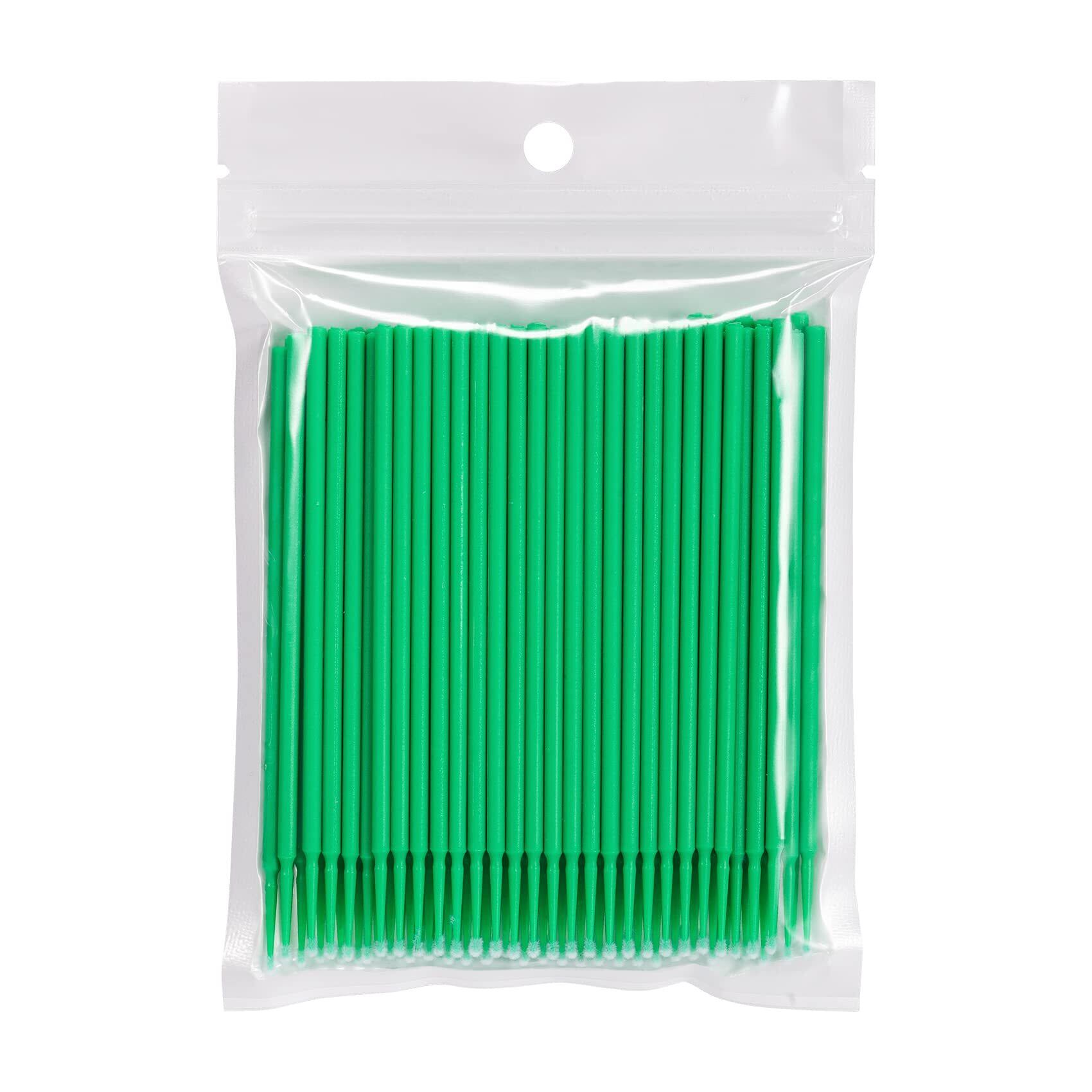 Annhua 綿棒 入り マイクロアプリケーター 100本セット 使い捨てマイクロスティック アプリケーター まつ毛 化粧道具 使い捨て 化粧ブラシ まつげブラシ マスカラブラシ 睫毛育毛剤用ツール 曲げ可能 高繊維製 グリーン