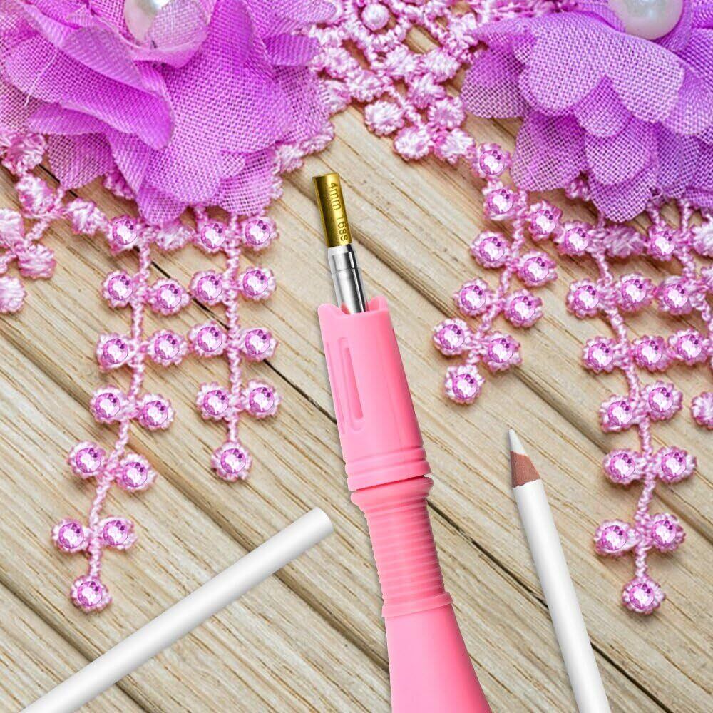 XINMEIWEN Bedazzlerキット、ラインストーン付き、ホットフィックスアプリケーターツール、ダイヤモンドペインティングペン、7つの異なるサイズのチップ、ピンセット、ブラシクリーニングキットDIY衣類シューズ用(ピンク)