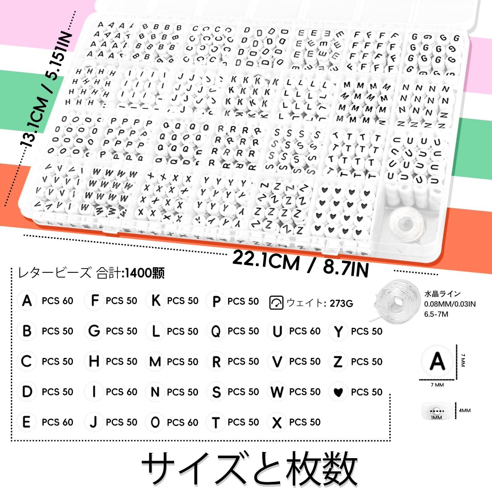 【お得な内容】28セルのグリッドコンテナで選別された1400個のビーズ。母音文字(AEIOU)はそれぞれ60個、他のアルファベットビーズはそれぞれ50個です。各ビードの直径は 7 mm/0.28 インチ、厚さは 4 mm/0.16 インチ、穴のサイズは 1 mm/0.04 インチです。ジュエリーストリング付き。