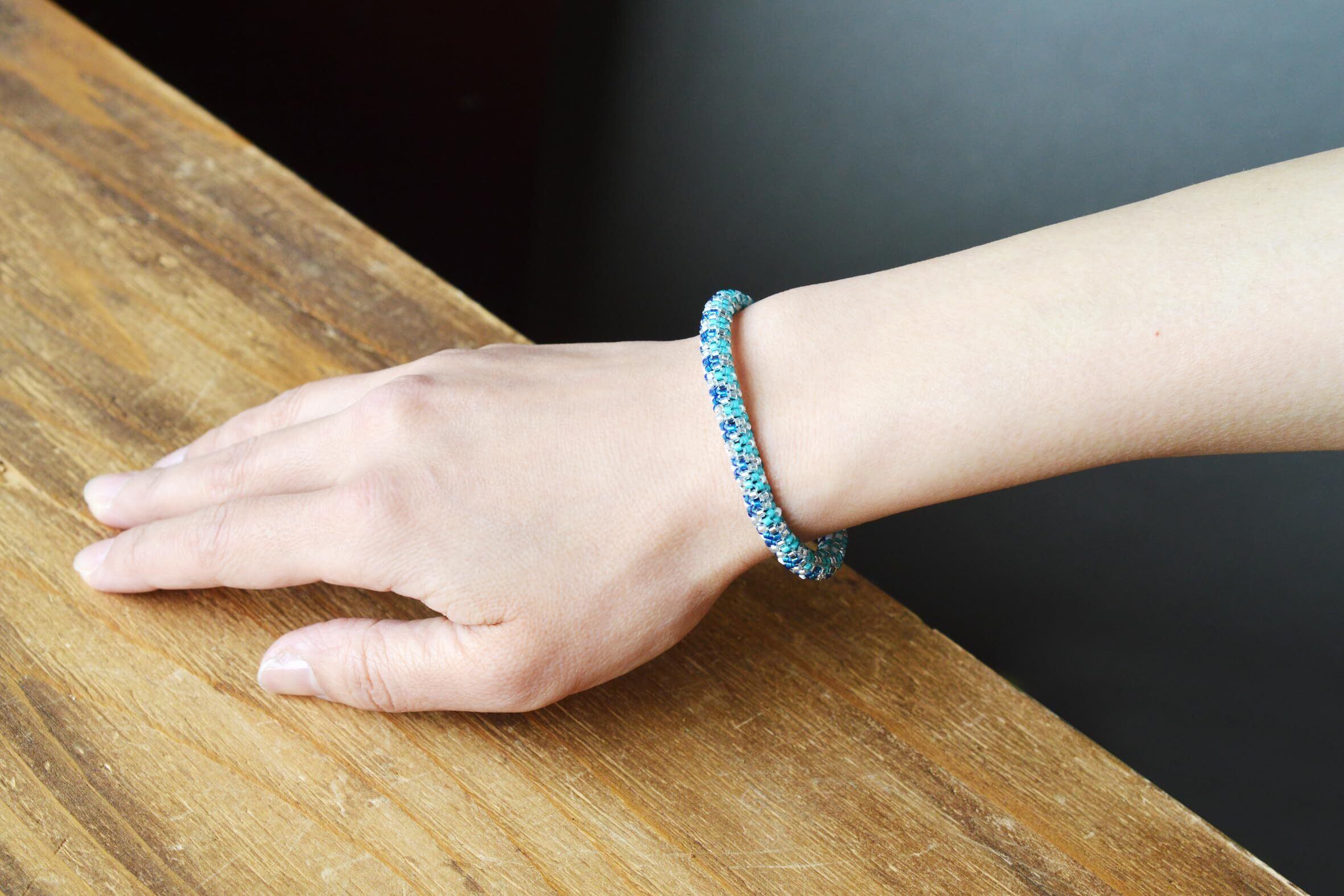セット内容:デリカビーズ、オペロンゴム糸、ビッグアイニードル、ブレスレットの芯に使うギム、作り方説明書