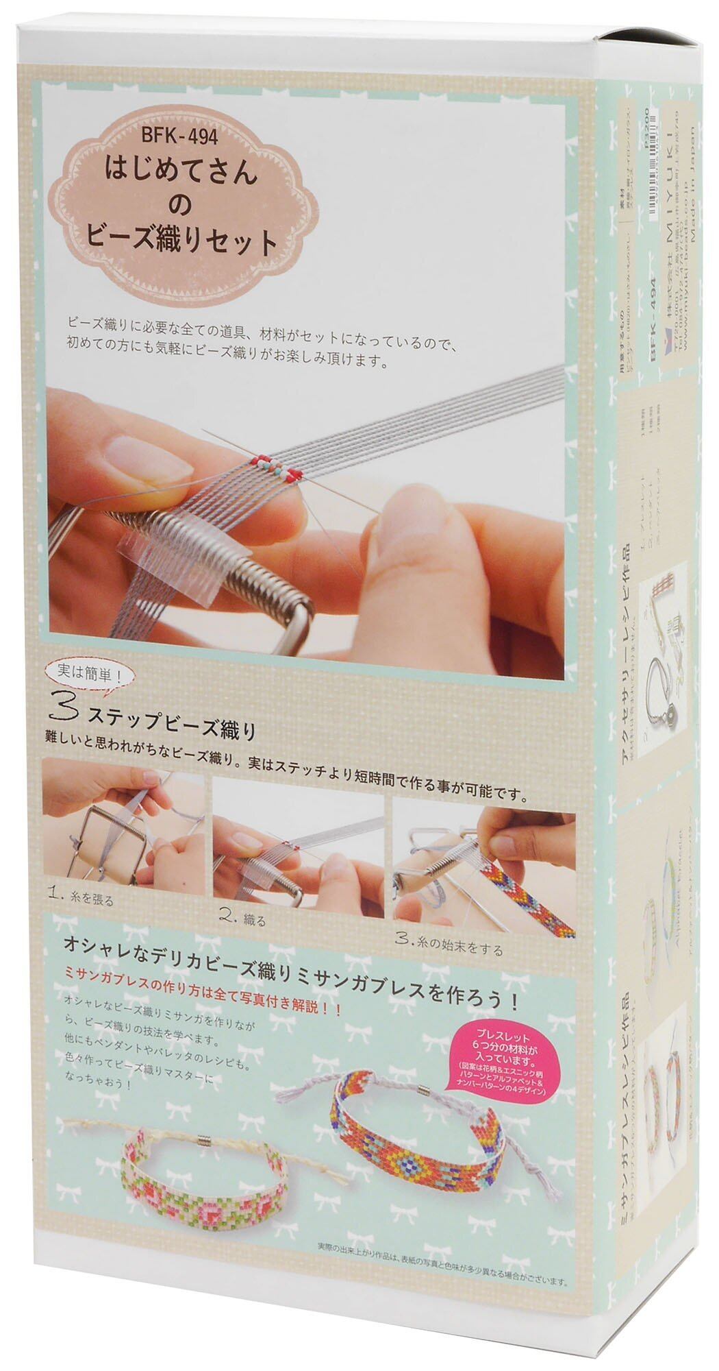 織機・専用糸・ビーズ等をセットにした"はじめてさん"向けのビーズ織りセットです。